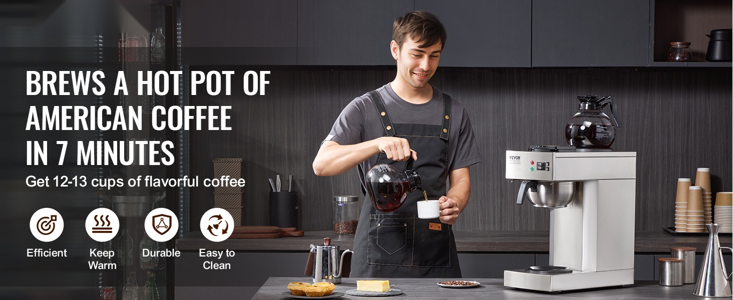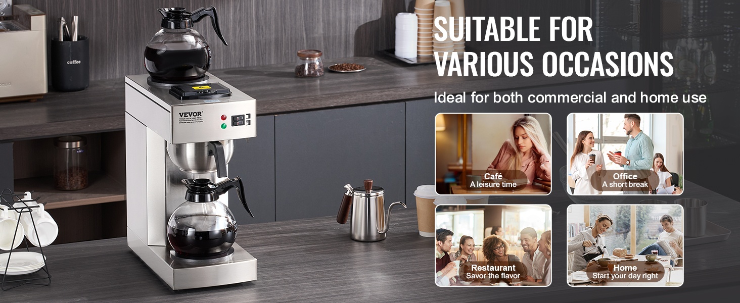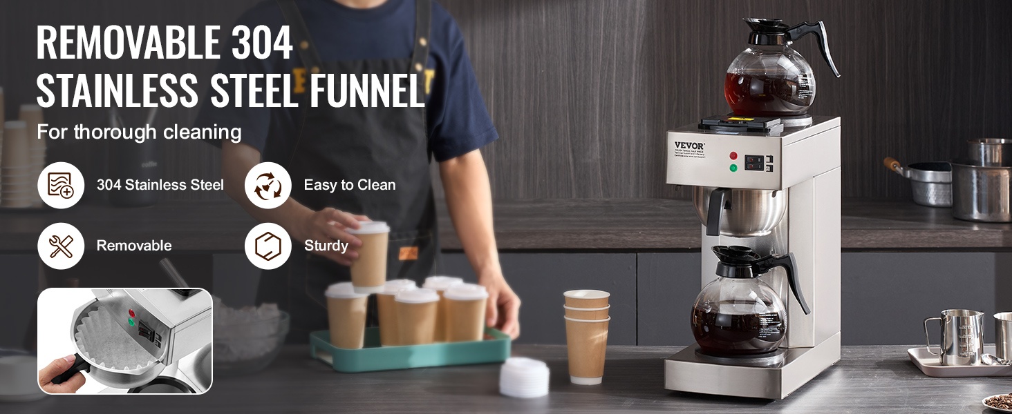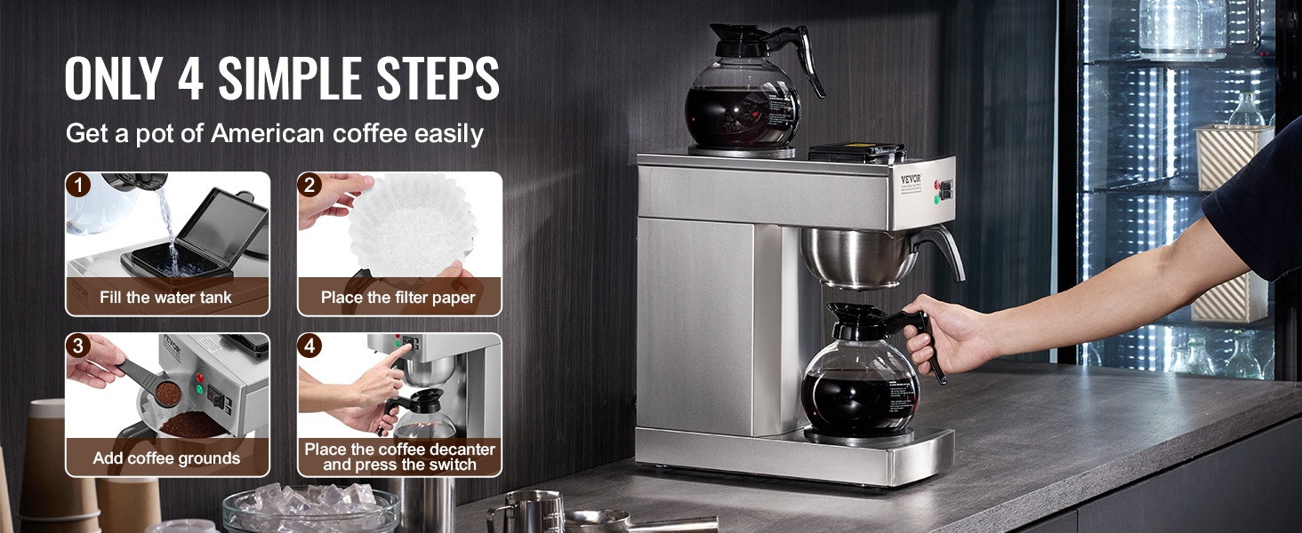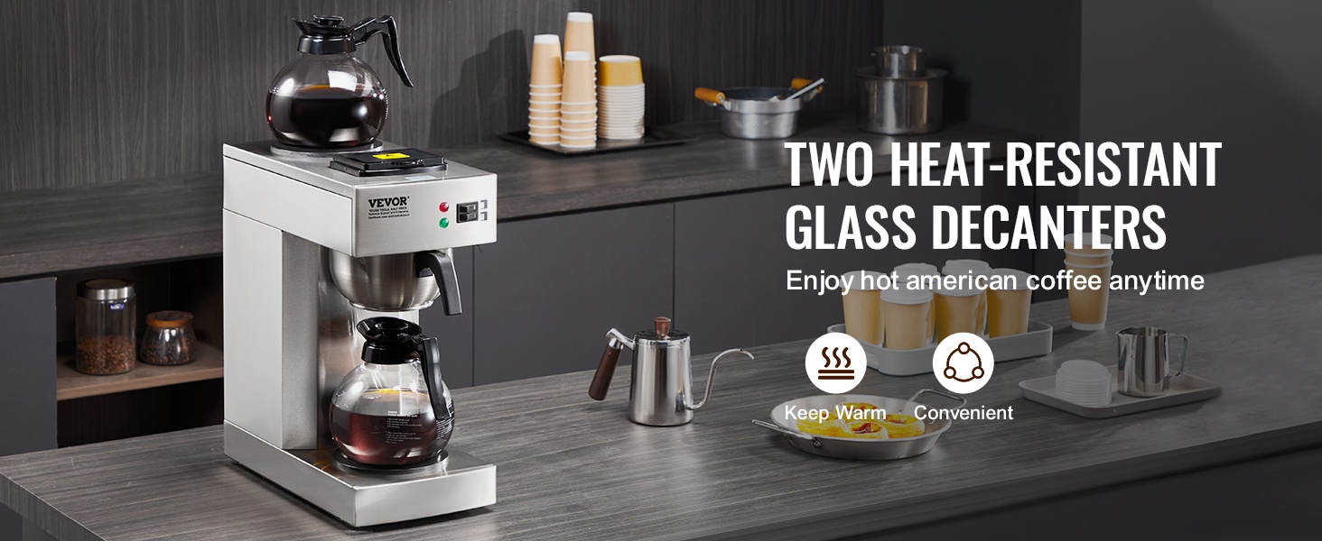 Kaupallinen suodatinkahvinkeitin ruostumaton teräsrunko 12 kupin 2 lasikannua 2 lämmityslevyä