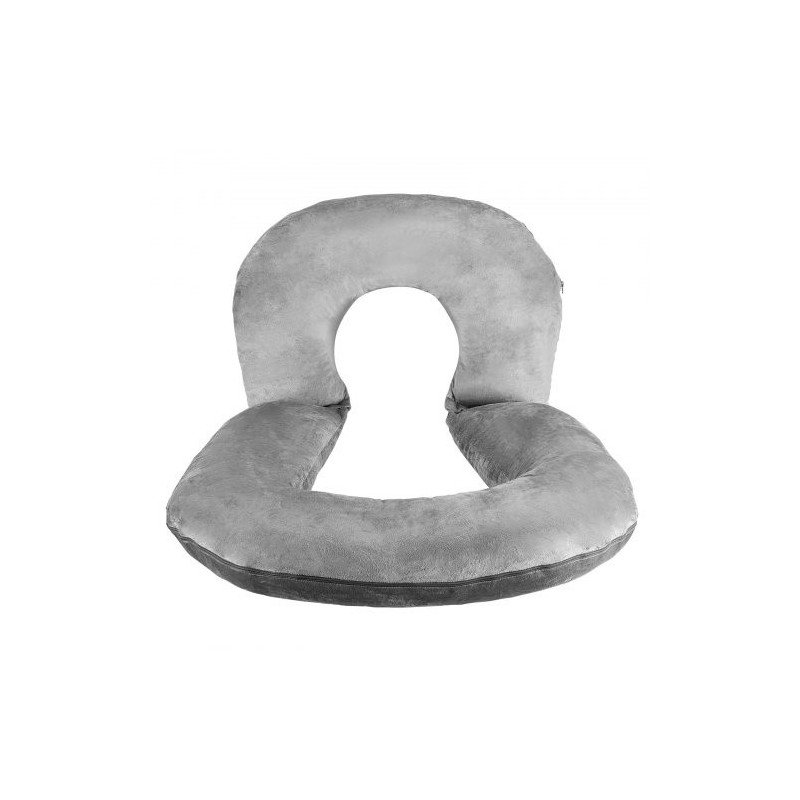 Suurikokoinen U-muotoinen seläntukityyny samettipäällisellä ja kuituvaahdolla 114x89x18cm harmaa