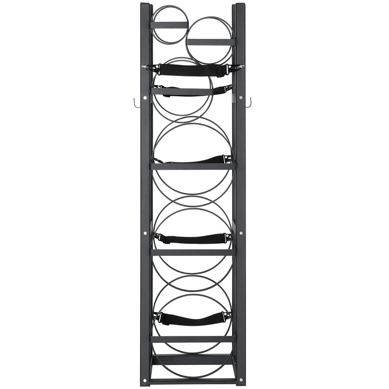 Kolmitasoinen sylinteriteline mitoiltaan 325 x 330 x 1197 mm / 12.79 x 12.99 x 47.12 tuumaa. Kestävästä hiiliteräksestä valmistettu teline tarjoaa vahvan kantokyvyn. Mukana tulevien asennustarvikkeiden ansiosta asennus on vaivaton, ja teline sopii hyvin esimerkiksi kaasupullojen varastoihin tai ajoneuvoihin.