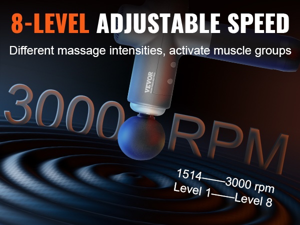 8 säädettävää nopeustasoa tarjoavat iskumassagerissa laajan voimakkuusalueen välillä 1514 RPM – 3000 RPM. Voit valita hellävaraisen rentoutuksen tai voimakkaamman syväkudoshieronnan tarpeesi mukaan, aktivoida lihasryhmiä ja helpottaa lihasväsymystä nopeasti.