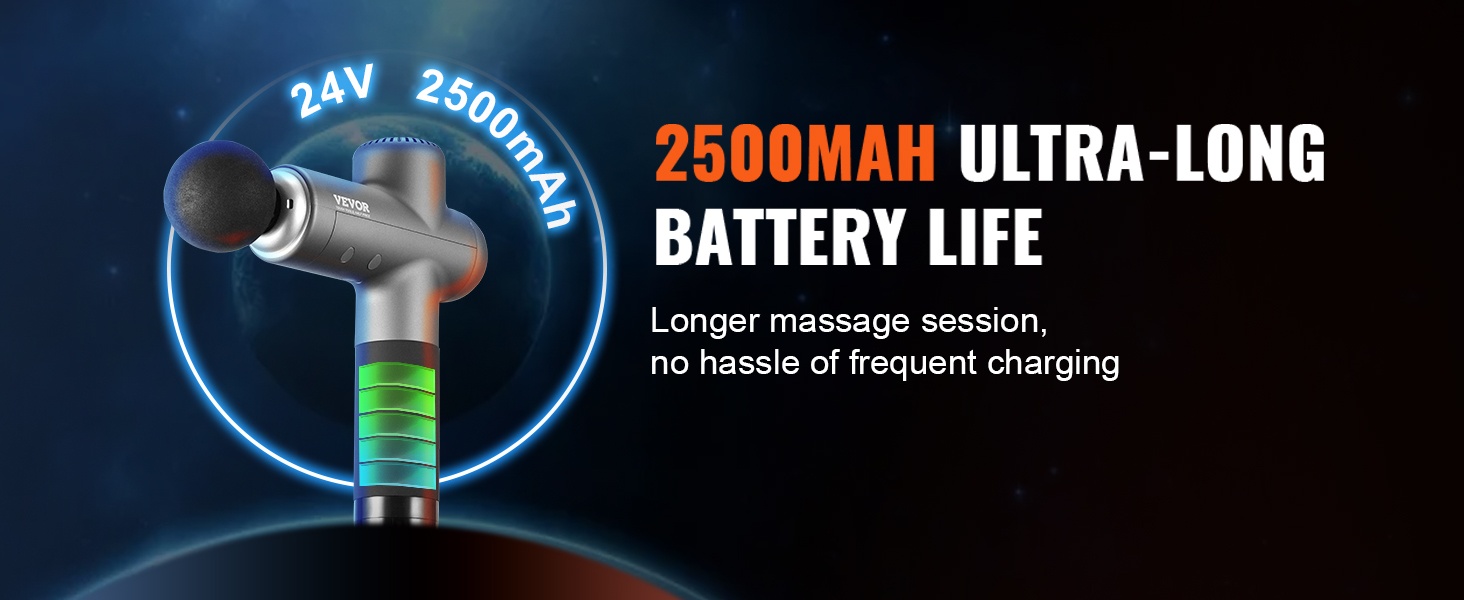 Syväkudoshierontapistooli 8 säädettävää nopeustasoa 6 vaihdettavaa hierontapäätä 24V 2500mAh akku kädessä pidettävä