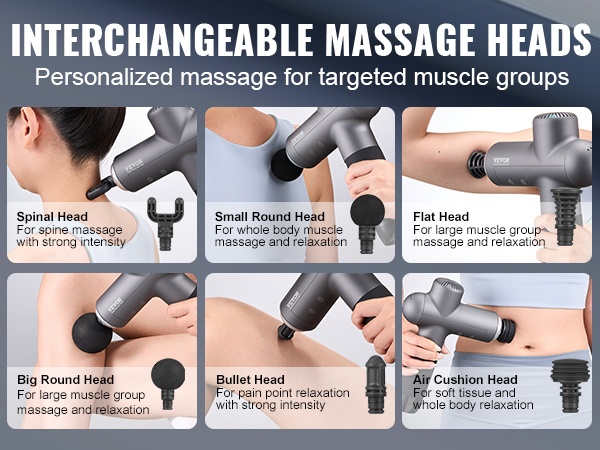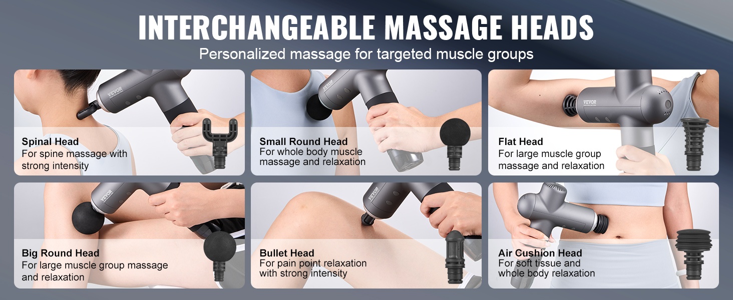 6 vaihdettavaa hierontapäätä tekevät tästä kannettavasta hierontapistoolista monipuolisen apuvälineen eri lihasryhmille ja käyttötarkoituksille. Olipa kyseessä syväkudoshieronta tai pintapuolinen rentoutus, saat kohdennettua ja miellyttävää helpotusta.