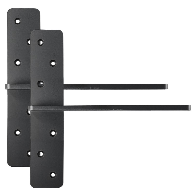Pakkaus sisältää kaikki tarvittavat tarvikkeet. Yksinkertainen 3-vaiheinen asennus takaa tukevan kiinnityksen ja vahvan tuen hyllyille ja tasoille.