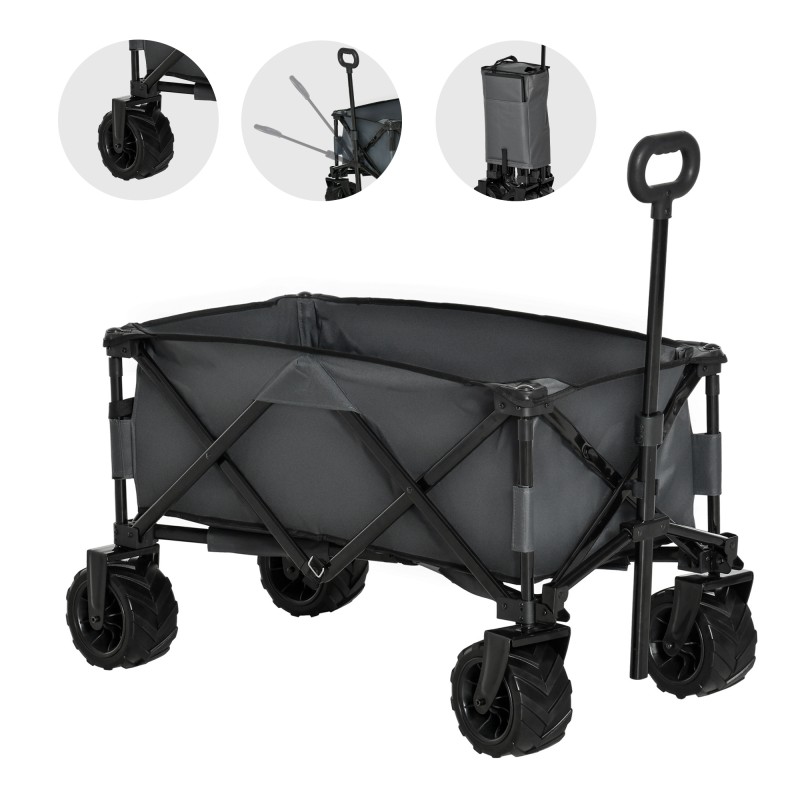 Taitettava kuljetusvaunu puutarhaan ja rannalle metalli/Oxford 108 x 55 x 59–89 cm 70 kg tummanharmaa