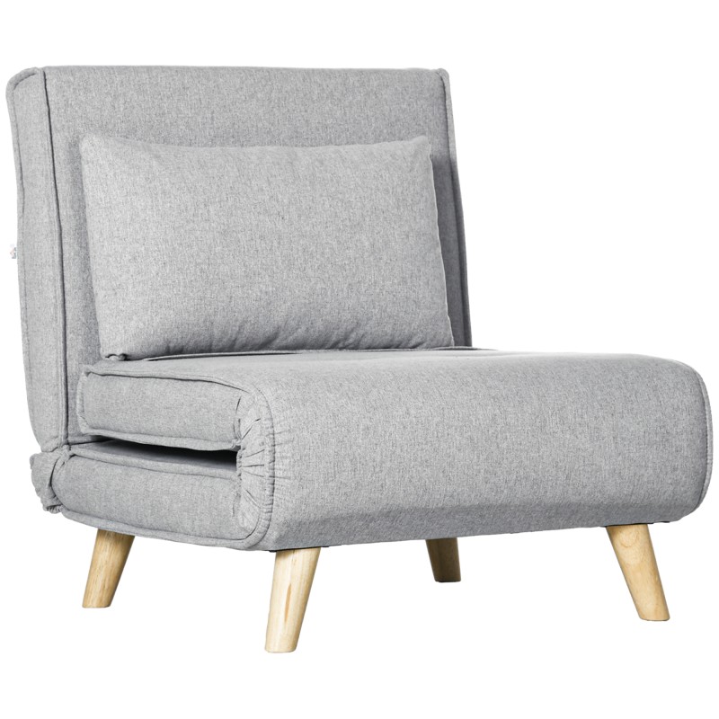 Kompakti vaaleanharmaa lepotuoli, joka muuttuu hetkessä vuoteeksi. Portaittain säädettävä selkänoja, miellyttävä kangaspinta ja tukeva rakenne tekevät siitä käytännöllisen ratkaisun pieneen olohuoneeseen, vierashuoneeseen tai opiskelija-asuntoon.