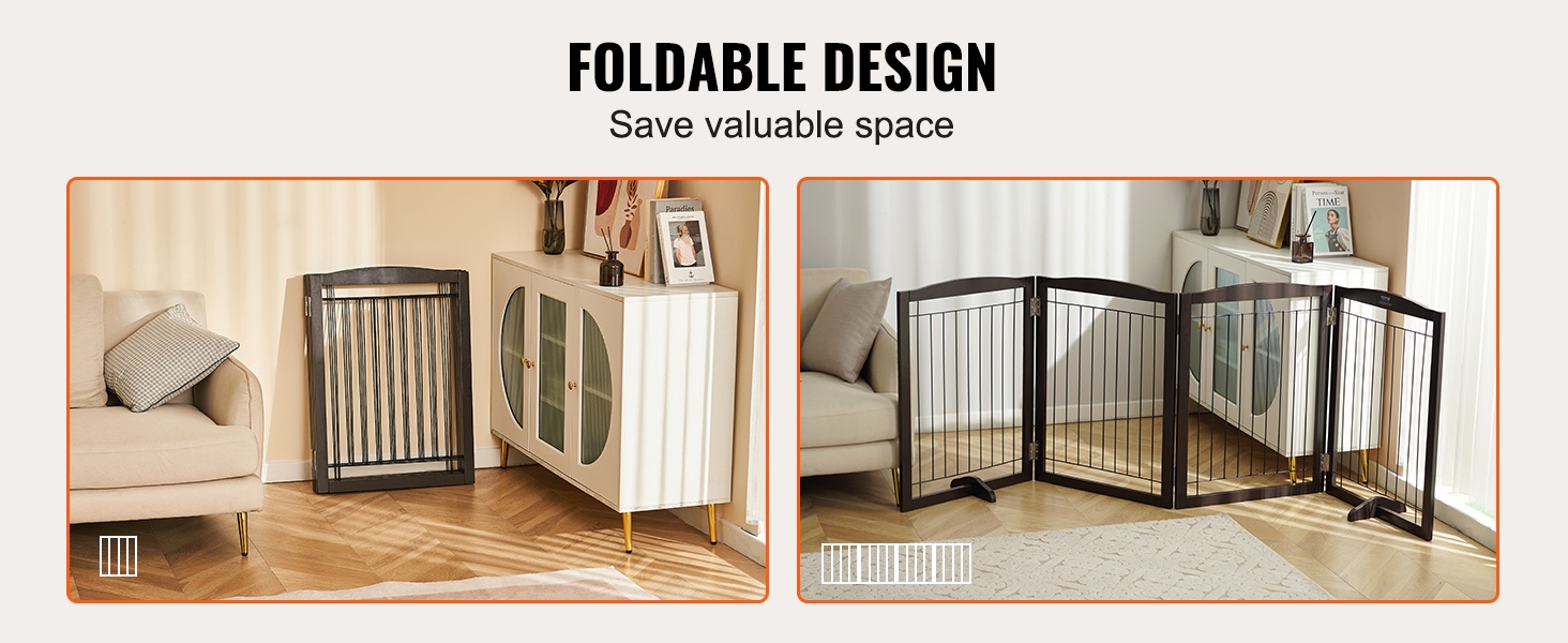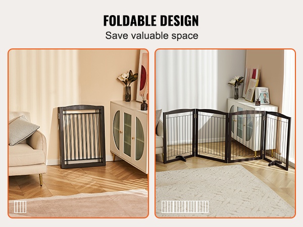 Taitettava neliosainen puinen vapaasti seisova koiraportti 245 cm leveä