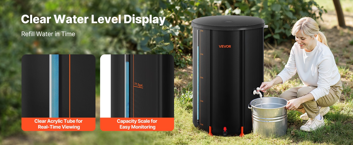 Taitettava sadevesisäiliö tarjoaa kestävän ja kätevän tavan kerätä sadevettä. Lootuspohja, 2 mm tukitangot, verkkokansi, esiasennettu poistoaukko, akryylinen mittaputki ja nopea kokoonpano tekevät siitä käytännöllisen ratkaisun kotiin, puutarhaan, maatilalle ja hätäkäyttöön.