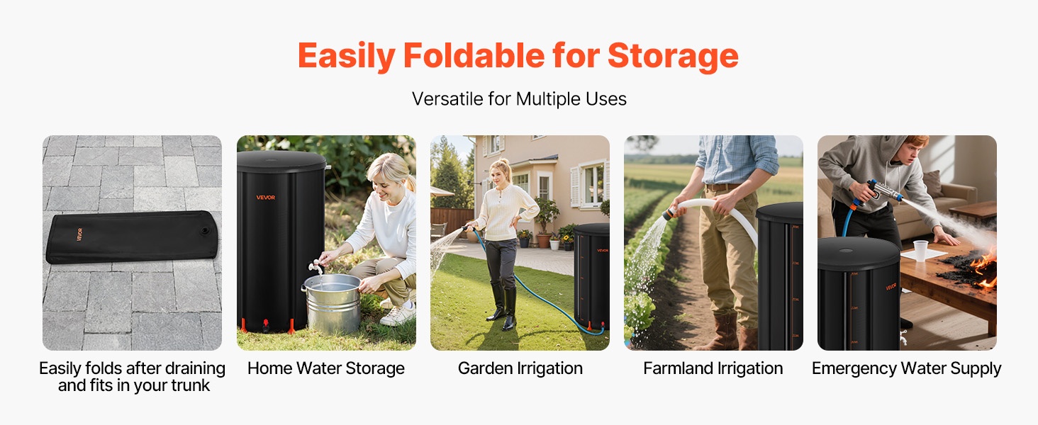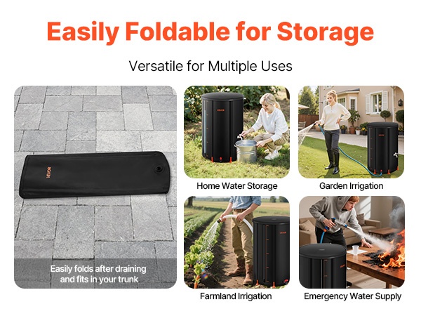 Tyhjentämisen jälkeen säiliö taittuu pieneen kokoon ja on helppo varastoida esimerkiksi auton tavaratilaan tai pieneen varastotilaan. Se soveltuu hyvin kotitalouden veden varastointiin, puutarhan ja viljelysmaan kasteluun sekä hätävesivarastoksi.