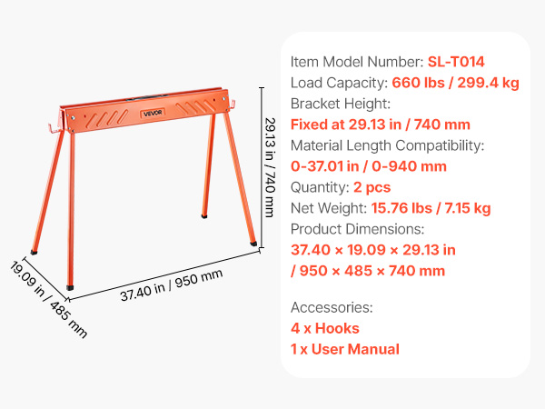 Taitettava sahapukkipari metallia 299,4 kg kantavuus luistamattomat jalat SL-T014