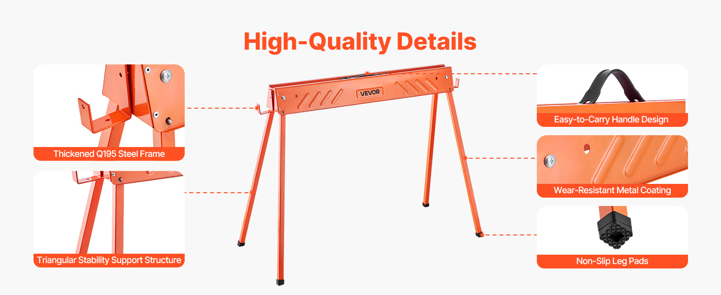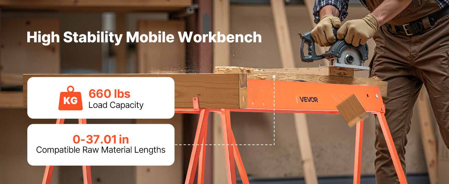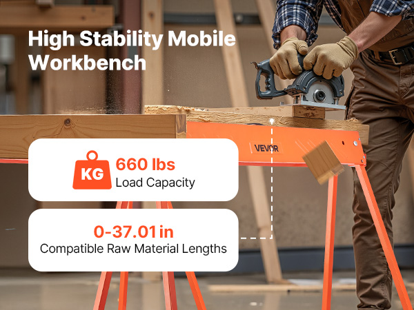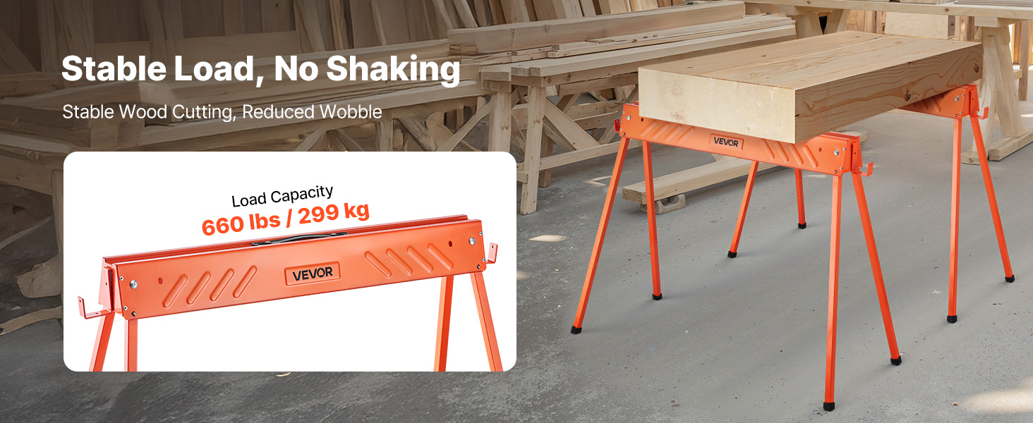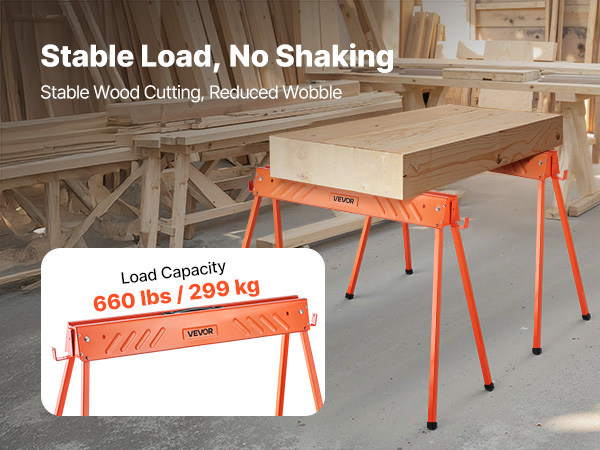 Vankat, siirrettävät sahapukit on valmistettu lujasta teräksestä. Taittojalkojen lukitus varmistaa vakauden ja kantavuuden ilman huojuvaa liikettä.