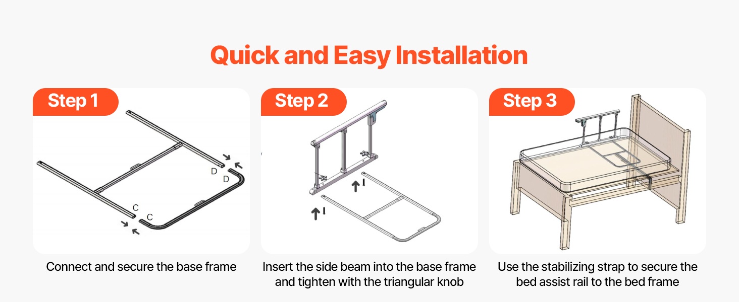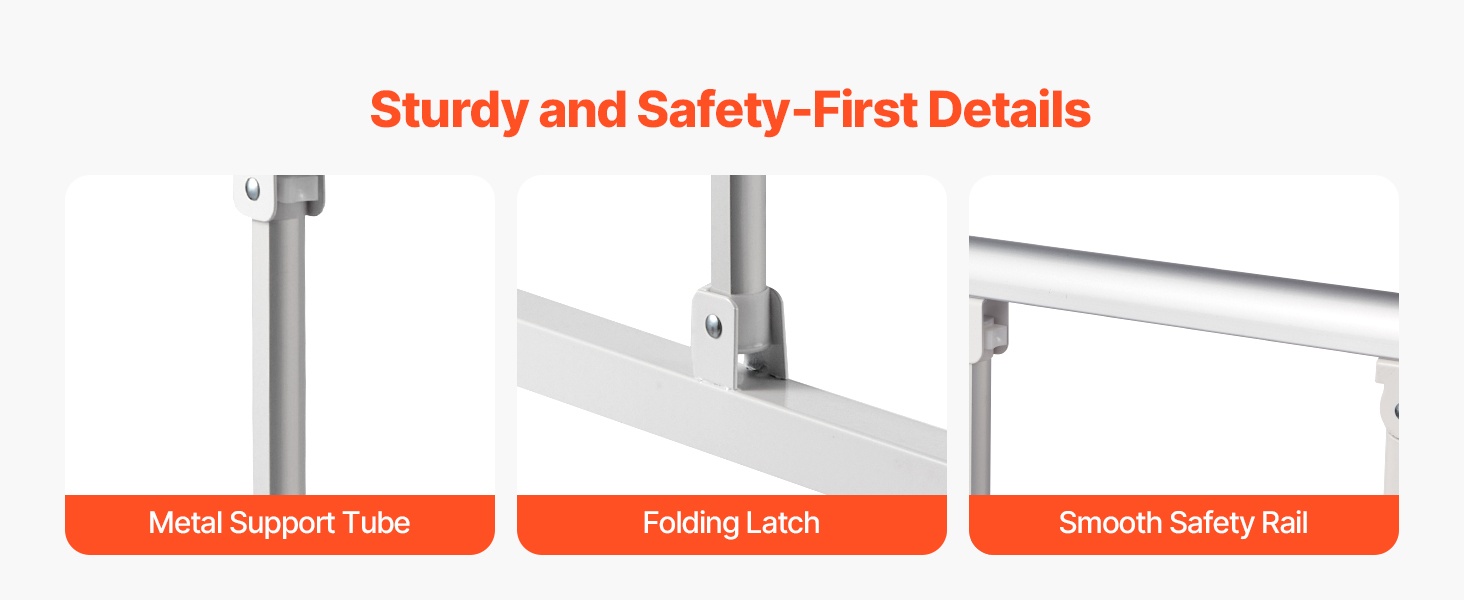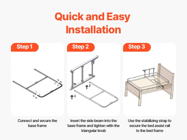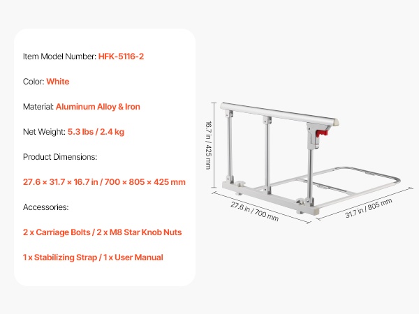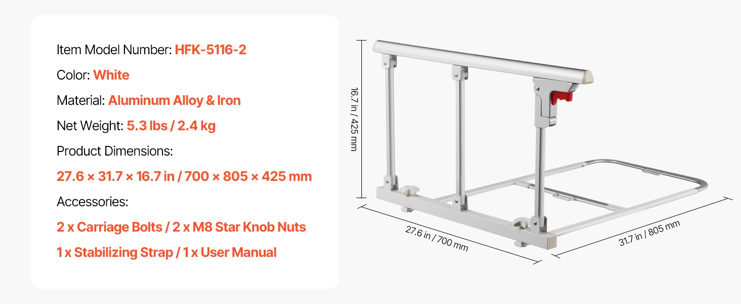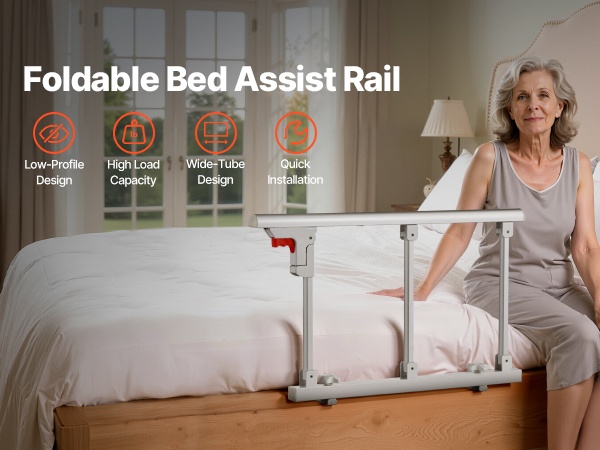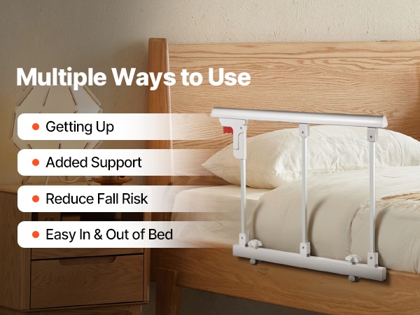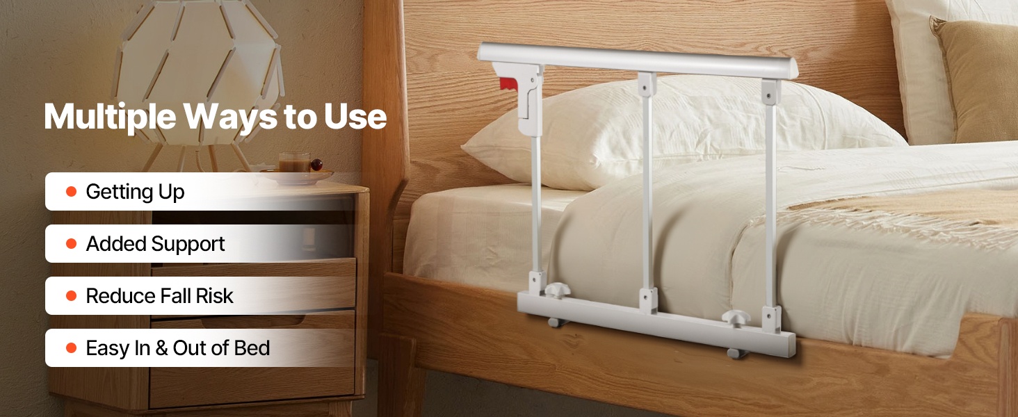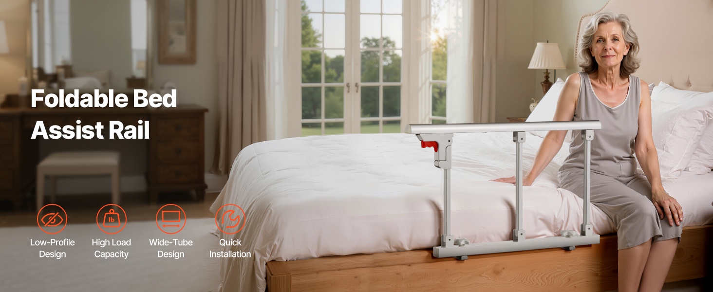 Tämä taitettava sängynlaita tarjoaa turvallista tukea sängystä nousemiseen ja sänkyyn menemiseen. Se sopii useimpiin sänkymalleihin (king, queen, full, twin) ja auttaa vähentämään kaatumisriskiä sekä lisäämään turvallisuuden tunnetta makuuhuoneessa.