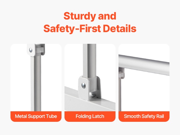 Sängynlaita täyttää CE- ja FDA-turvallisuusstandardit. Rakenne perustuu vahvaan metalliseen tukiputkeen, joka kestää aikuisen painon ja tarjoaa luotettavan, pitkäaikaisen käytön.