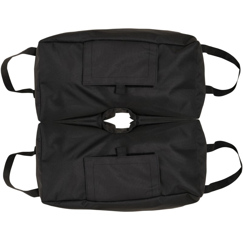 - Nopea täyttö: Suuret tarrakiinnitteiset täyttöaukot ja mukana toimitettava muovilapio helpottavat säkkien täyttämistä hiekalla jopa 50 kg painoon asti.