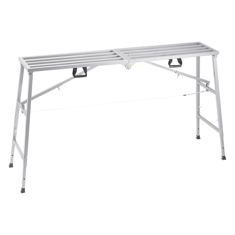 Tämä taitettava teräksinen työalusta helpottaa korkealla tehtäviä töitä, kuten maalausta, tasoitusta, siivousta ja pesua. Kevyt ja helposti kuljetettava taso on nopea avata ja sulkea, ja säädettävän korkeuden ansiosta sen voi mukauttaa eri työtilanteisiin.