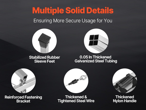 Tämä kannettava teline helpottaa korkealla työskentelyä nopean taitto- ja avausmekanismin avulla. Monikolmiorakenteen ansiosta alusta on vakaa, ja 1.2 mm paksut, suuren kovuuden galvanoidut teräsputket parantavat kestävyyttä. Neljä säädettävää jalkaa mukautuvat epätasaiseenkin alustaan ja tarjoavat tukevan työpinnan.