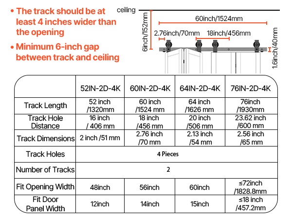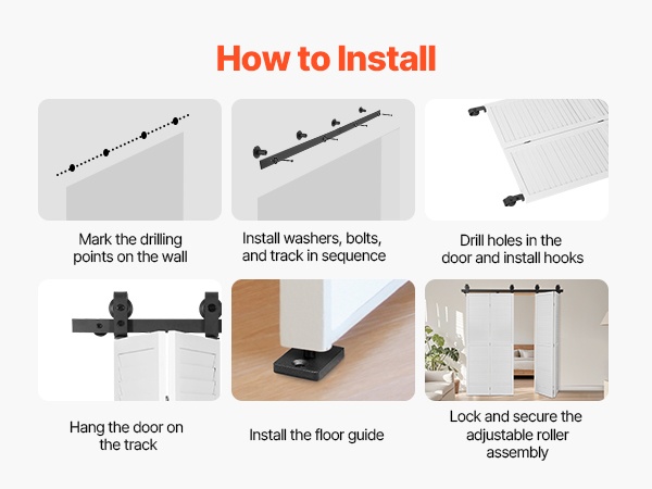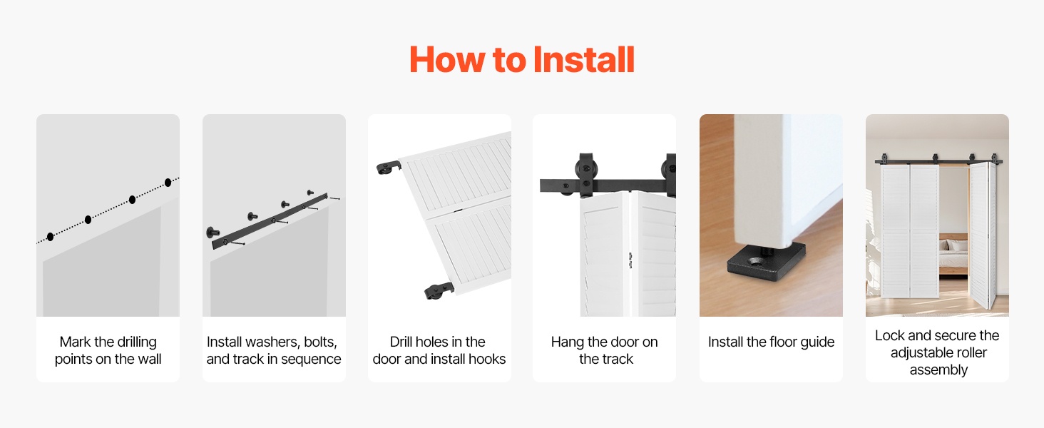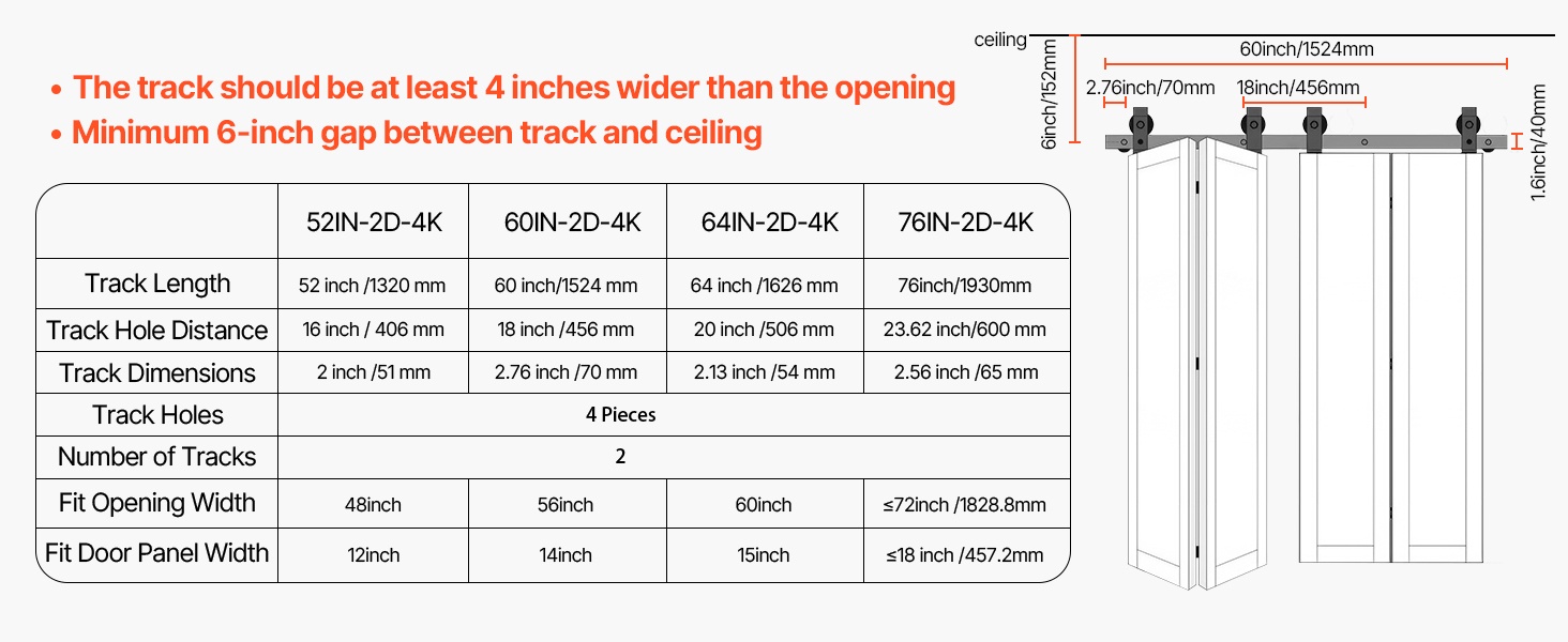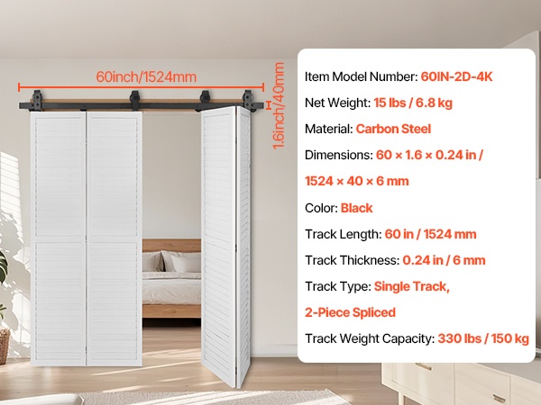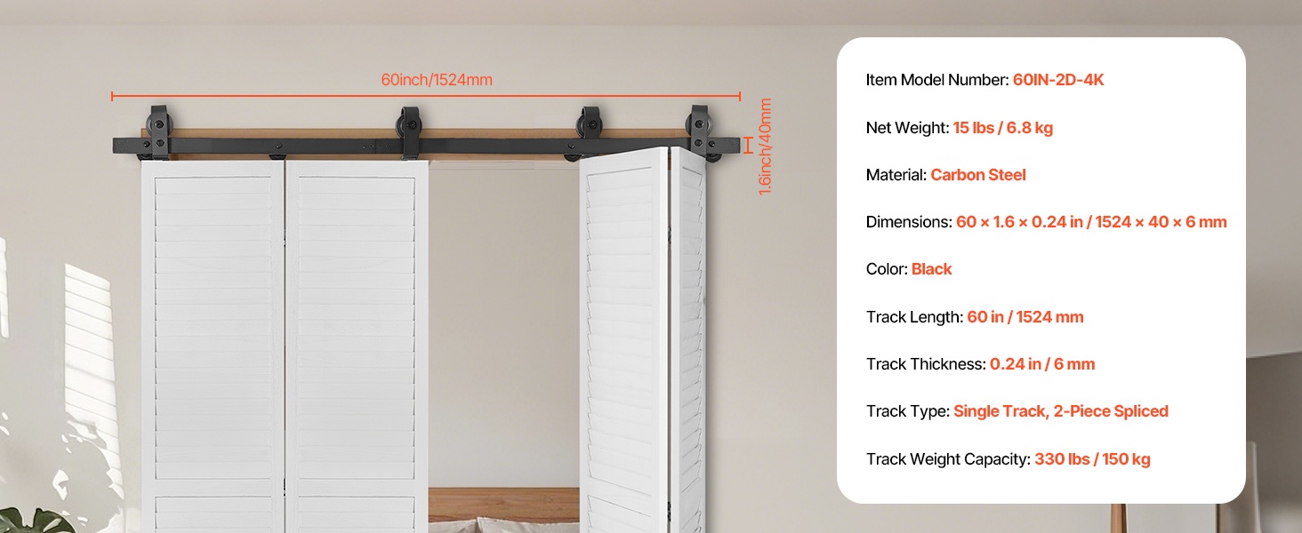 Tämä kaksiosainen taittuva liukuoven kiskosarja on valmistettu kestävästä hiiliteräksestä ja se kestää jopa 330 lbs / 150 kg kokonaiskuorman. Taittuva rakenne säästää tilaa ja sopii erityisesti kapeisiin tiloihin, kuten vaatekaappeihin, kodinhoitohuoneisiin ja keittiön komeroihin. Musta jauhemaalaus parantaa korroosionkestävyyttä kosteissa tiloissa.