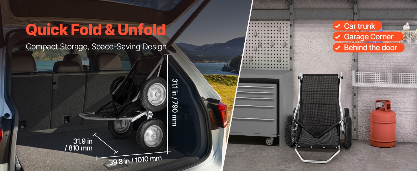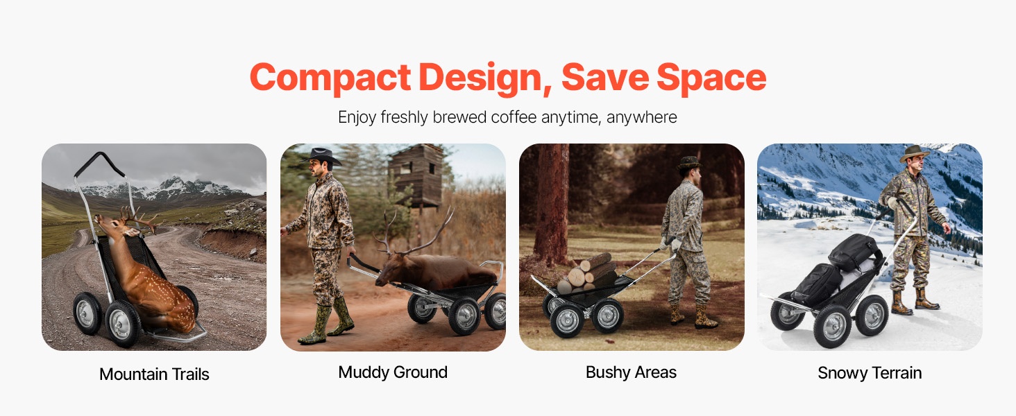 Taittuva metsästyskärry alumiiniseos ja sinkitty teräsrunko 227 kg kantavuus nelirenkaat