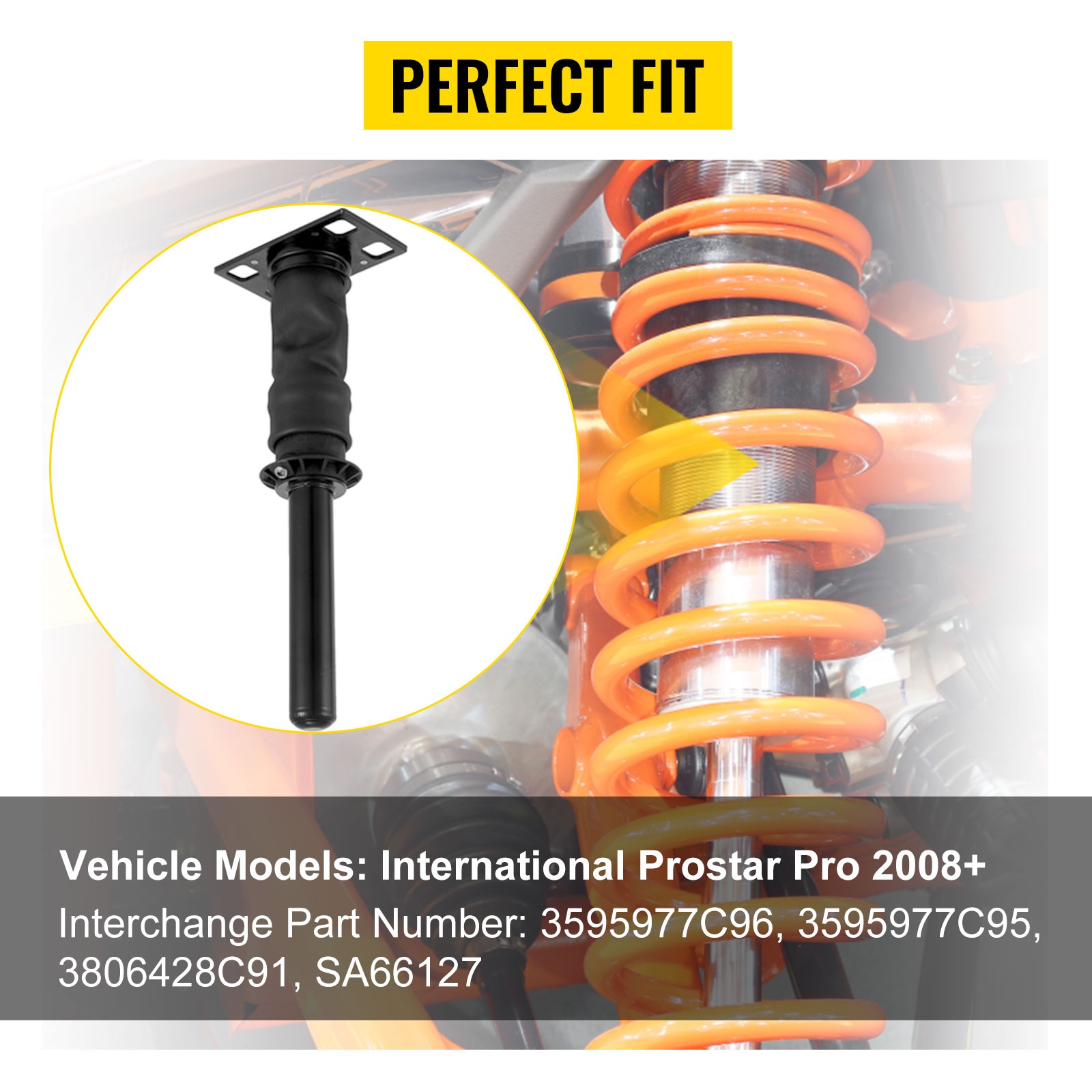 Tämä takahytin ilmajoustinpari on suunniteltu International Prostar 2008+ -ajoneuvoihin. Se auttaa vähentämään hytin tärinää, melua ja korin kallistelua, mikä parantaa ajomukavuutta ja ajoneuvon hallittavuutta vaihtelevissa tieolosuhteissa. Ilmajouset korvaavat alkuperäiset osat suoraan ja sopivat vaihtonumeroihin 3595977C96, 3595977C95, 3806428C91, SA661 / SA66127.