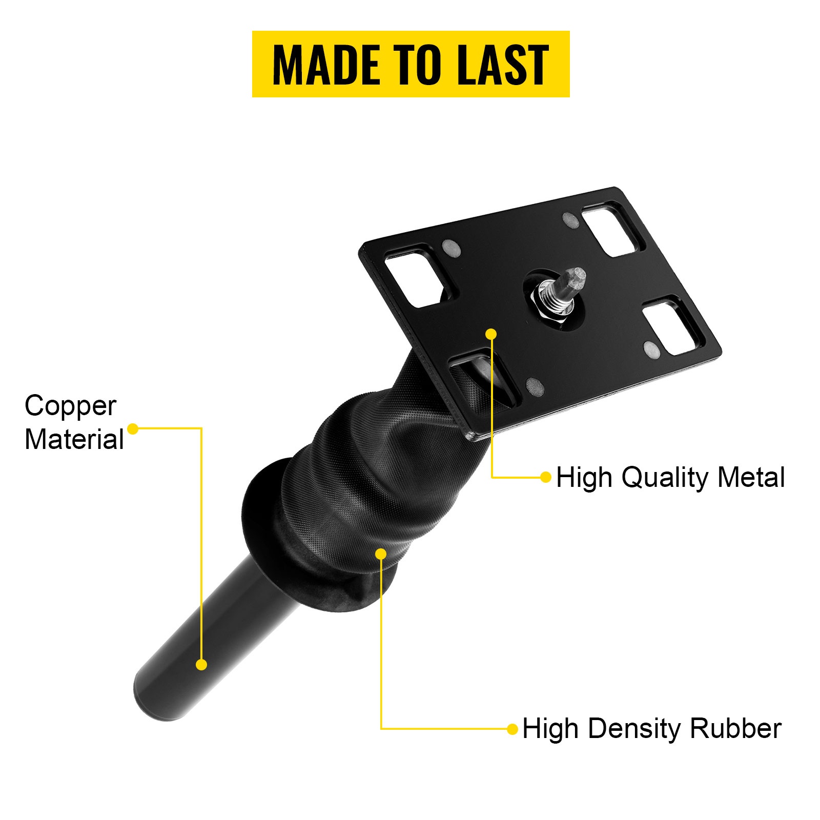 - Korkealaatuinen metalli-, kupari- ja kumirakenne
