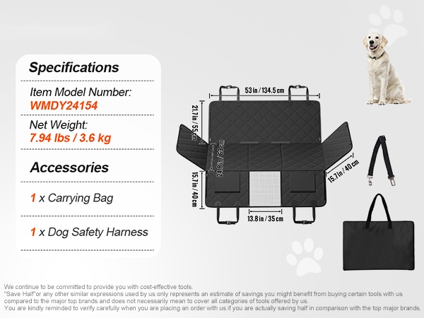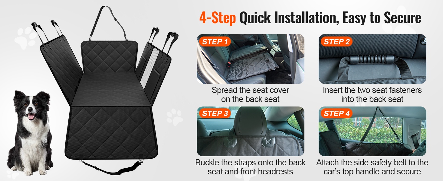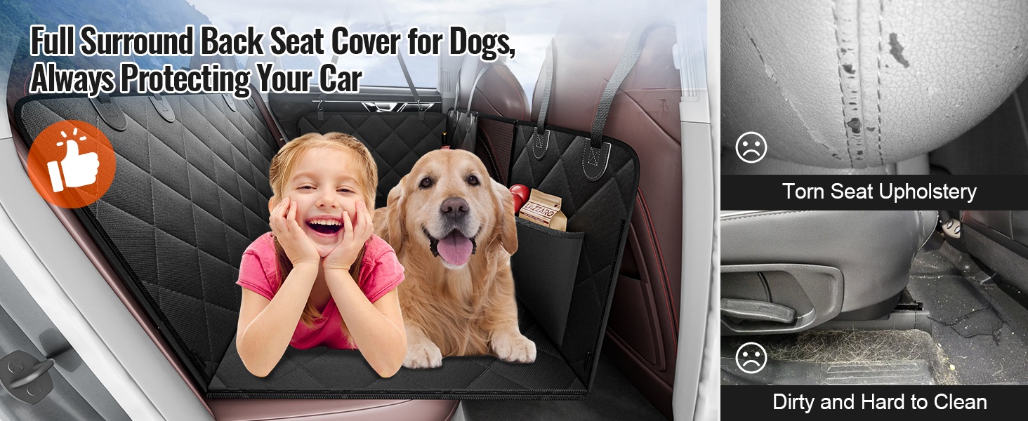Tarjoaa koirallesi mukavan ja suojatun paikan auton takaistuimella. Vedenpitävä ja kestävä suojus suojaa istuimia lialta, naarmuilta ja kuolalta sekä auttaa pitämään auton sisätilat siistinä pidemmilläkin matkoilla.