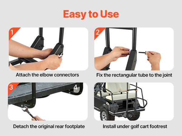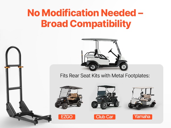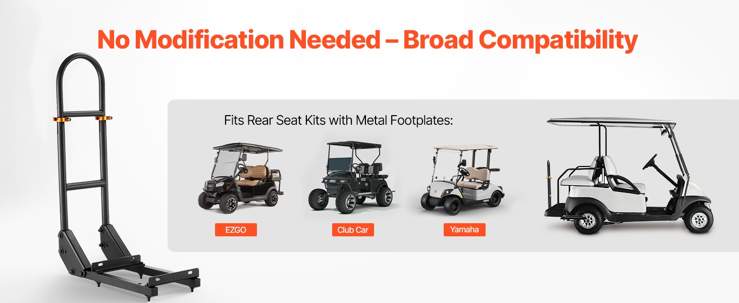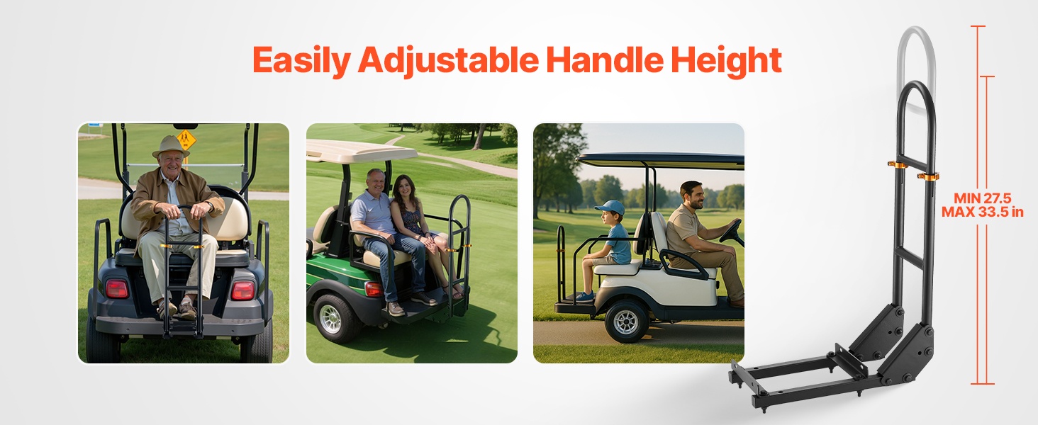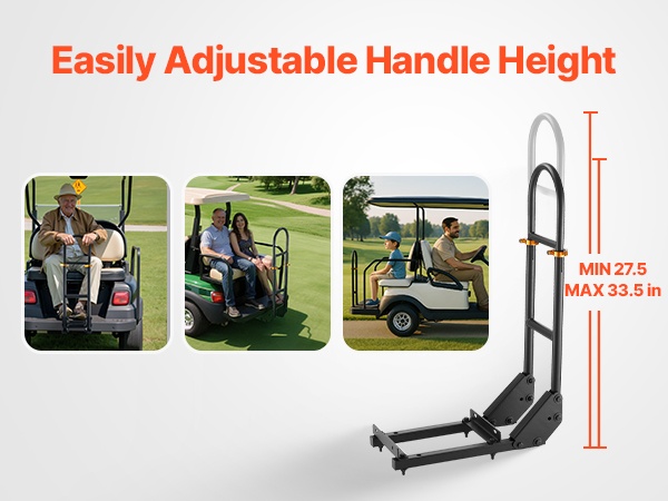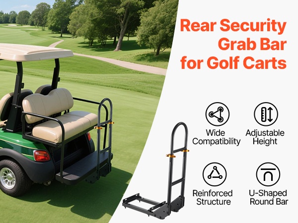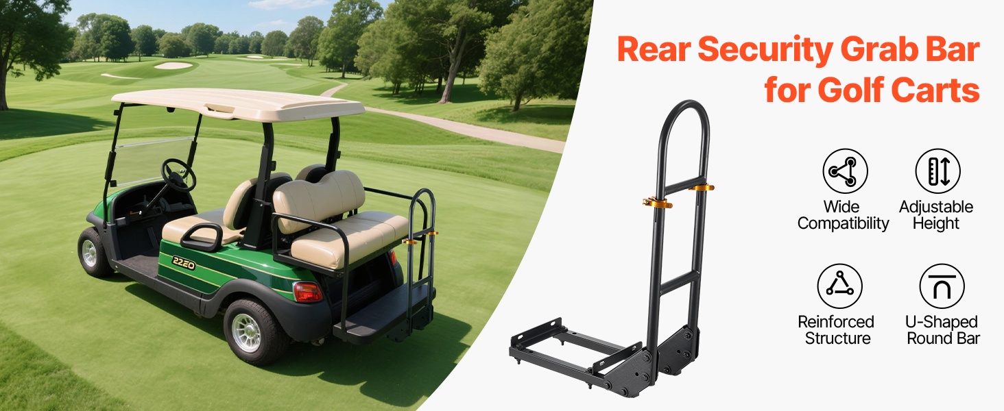 Tämä korkeussäädettävä takaistuimen käsikaari lisää matkustajien turvallisuutta ja tukea golfkärryssä. Ergonominen U-muotoinen kaide helpottaa kyytiin nousua ja kyydistä poistumista ja sopii useimmille metallisella jalkalevyllä varustetuille golfkärryille ilman muutostöitä.