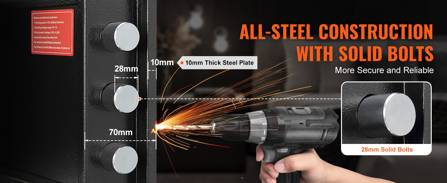 - Vankka teräsrakenne ja kolme massiivista pulttia suojaavat murtautumiselta