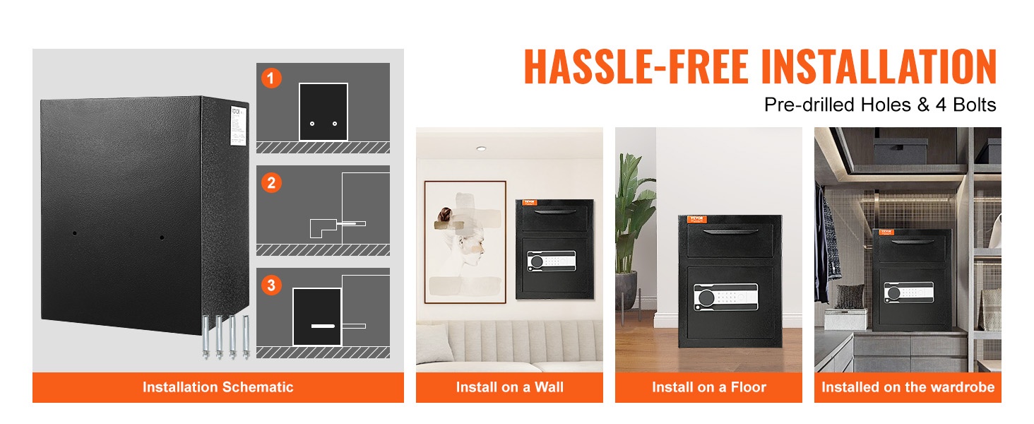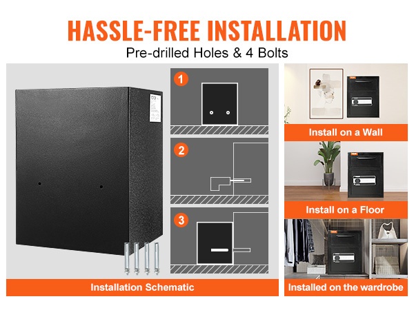 Asennus on vaivaton. Tallelokerossa on kaksi esiporattua kiinnitysreikää, jotka helpottavat seinään tai muuhun tukevaan pintaan kiinnittämistä. Kiinnitys sujuu muutamassa minuutissa, mikä parantaa huomattavasti lokeron turvallisuustasoa.