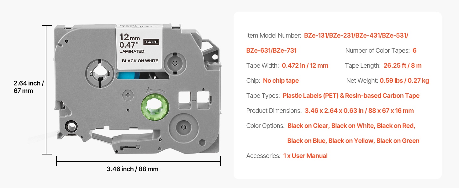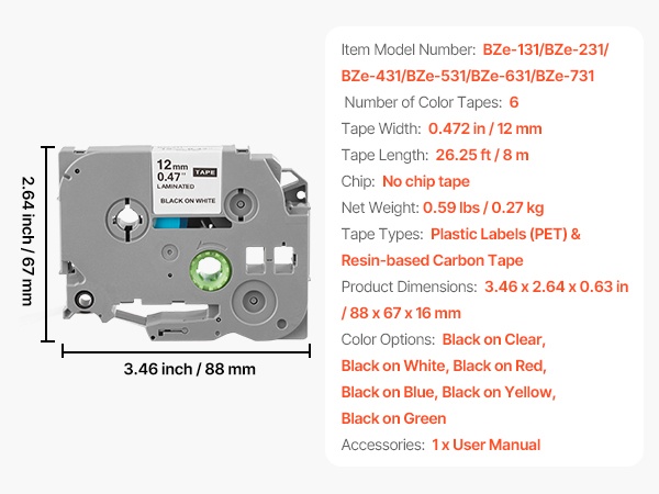 - Yhteensopiva monien Brother P-Touch -malleiden kanssa (esim. TZe-131, TZe-231, TZe-431, TZe-531, TZe-631, TZe-731).