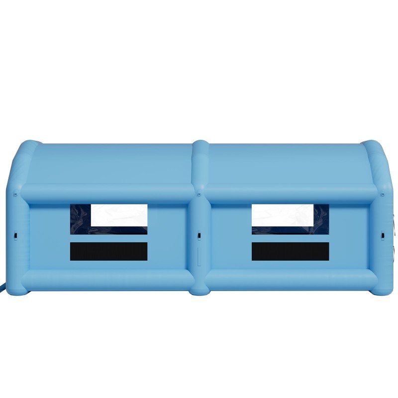 Tämä 12 x 5 x 4 m kokoinen täytettävä maalausteltta tarjoaa suojatun ja siistin työtilan autojen, pakettiautojen, kuorma-autojen, suurten huonekalujen ja peltiosien maalaamiseen. Kolmiomainen katto parantaa tilankäyttöä ja ilmanvirtausta, ja läpinäkyvät PVC-ikkunat päästävät luonnonvalon sisään, jolloin työskentely on miellyttävämpää.