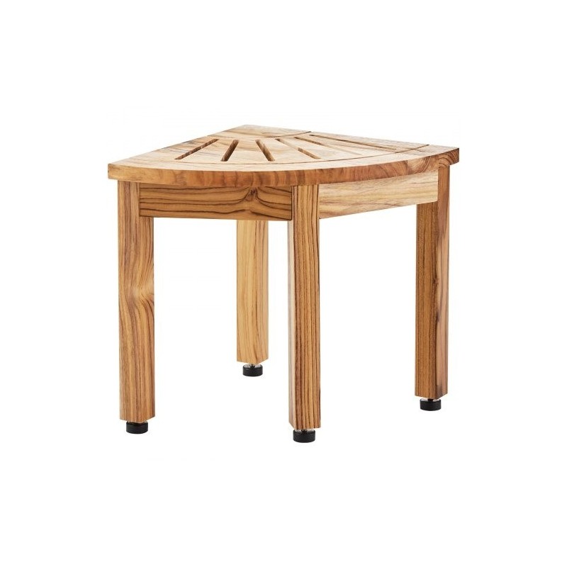 Tämä kulmaan sijoitettava teak-puinen suihkupenkki helpottaa suihkussa istumista ja jalkojen hoitoa. Penkki on valmistettu 100 % massiivisesta teak-puusta, joka on käsitelty molemmin puolin sekä alapinnalta. Materiaali kestää hyvin kosteutta ja sopii erinomaisesti kylpyhuoneeseen ja muihin kosteisiin tiloihin.