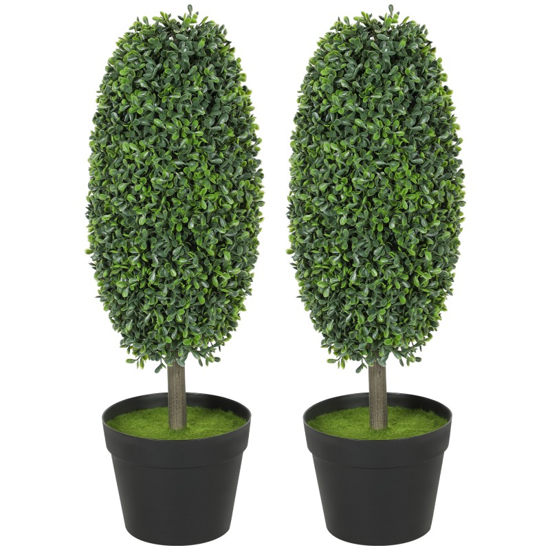 Pakkaus sisältää kaksi 60 cm korkeaa tekokasvia ruukuissa. Jokaisessa kasvissa on 322 muovilehteä ja painotettu ruukku.