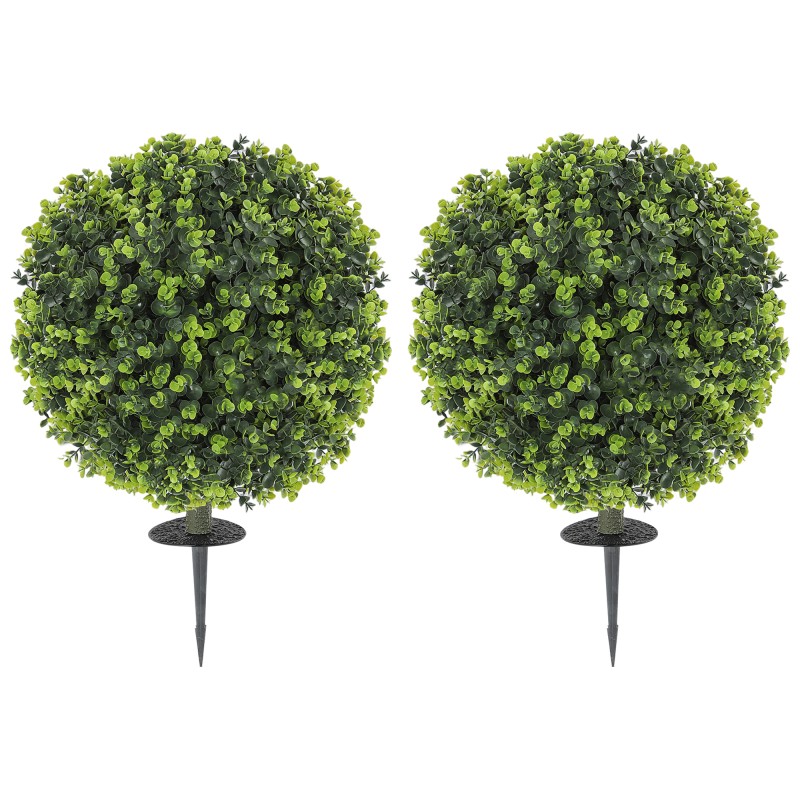 Luo vihreä, huoliteltu ilme mihin tahansa tilaan ilman kastelua tai leikkaamista. Tässä kahden tekokasvin setissä on aidon näköiset, pyöreät “pensasmaiset” pallot, joissa on runsaasti pieniä eukalyptuksen lehtiä. Ne sopivat yhtä hyvin sisälle kuin ulos ja säilyttävät värinsä ympäri vuoden UV-suojatun rakenteen ansiosta.