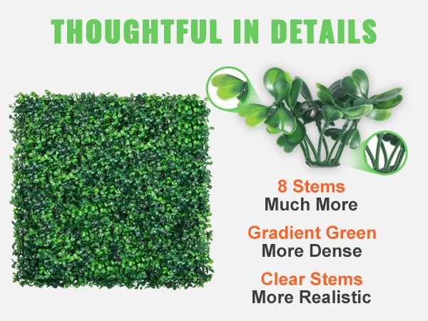 Tekohaiviäseinä yhdistää näkösuojan ja vehreän ulkonäön. Lehtipinta on valmistettu haalistumista kestävistä materiaaleista, joten väri säilyy kirkkaana myös vaihtelevissa sääolosuhteissa.
