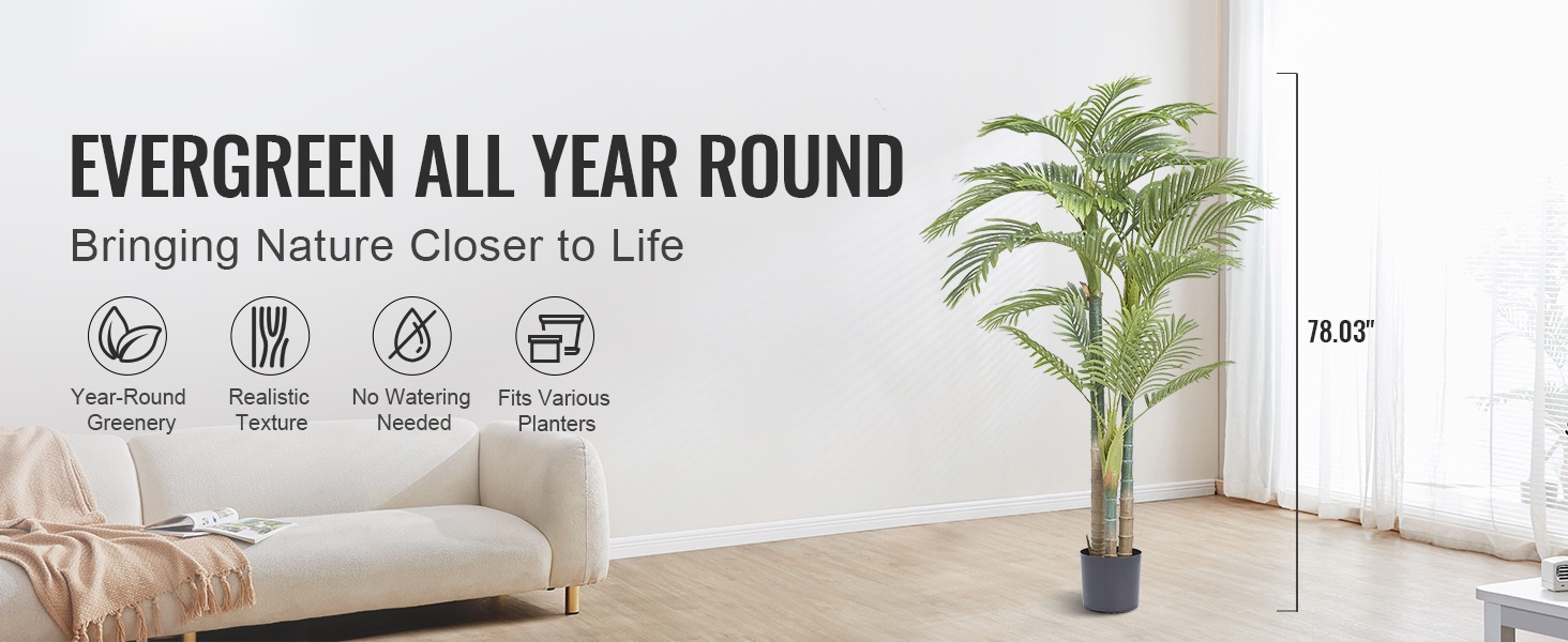 Tämä 1.5 m tekooliivipuu tuo luonnonläheisen, vehreän ilmeen sisä- ja ulkotiloihin ilman kastelua tai leikkausta. Kompakti koko sopii hyvin olohuoneeseen, toimistoon, varastotilaan tai sisääntulon yhteyteen tuomaan viihtyisyyttä ja viimeisteltyä ilmettä.