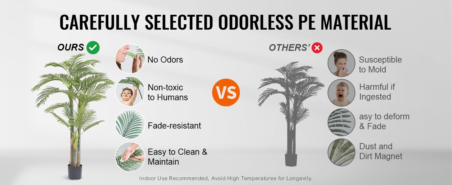 Puu on valmistettu PE-materiaalista, joka on turvallinen käyttää kodissa, toimistossa ja tiloissa, joissa liikkuu lapsia tai lemmikkejä. Voit sijoittaa sen huoletta esimerkiksi olohuoneeseen, aulaan tai työtilaan.