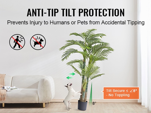 Rakenteensa ja jalustansa ansiosta puu pysyy vakaana jopa ≤8° kallistuksessa. Tämä vähentää kaatumisriskiä ja lisää turvallisuutta niin ihmisille kuin lemmikeillekin.