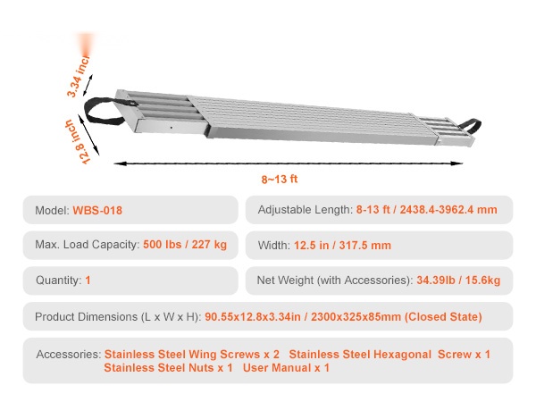 Teleskooppinen alumiininen työtaso helpottaa päivittäistä työskentelyä ja lisää turvallisuutta. Kestävä alumiinirakenne ja enintään 500 lbs / 227 kg kantavuus mahdollistavat työskentelyn mukavasti ja tehokkaasti yhdelle tai kahdelle käyttäjälle.