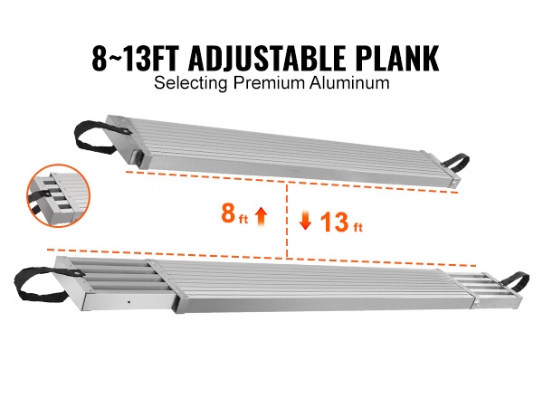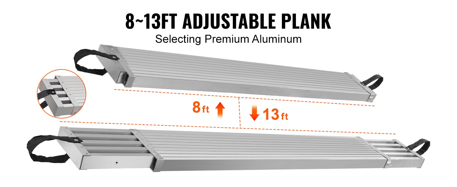 Teleskooppinen alumiininen työtaso 2438–3962 mm 227 kg kantavuus telineille