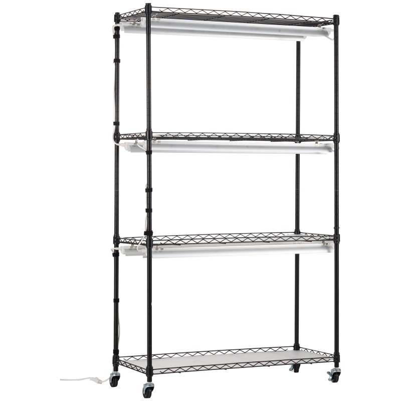 Tämä 180W kasviteline tarjoaa neljä hyllytasoa sisäkasvatukseen. Kuusi LED-valopaneelia (400-780nm täysspektri) tukevat kasvien kasvua kaikissa vaiheissa. Korkeatiheyksisestä teräksestä valmistettu runko kestää ruostetta ja hapettumista, ja koko rakenne kantaa yhteensä jopa 330 paunaa erilaisia kasveja.