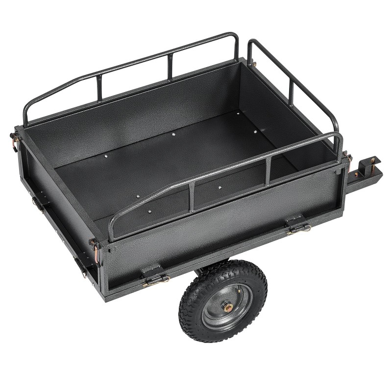 Teräksinen puutarhavaunu 227 kilogramman kantavuus mönkijän ja ruohonleikkurin perään 14 tuuman renkaat