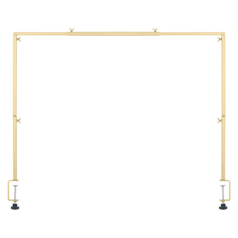Metallinen pöytäkaariteline puristinkiinnityksellä helpottaa juhlien ja tilaisuuksien koristelua. Korkeutta ja pituutta voi säätää eri pöytäkokoihin, ja teline kantaa koristeita yhteensä 10 lbs - 20 lbs / 4.5 kg - 9.1 kg ilman kaatumista. Mukana tuleva säilytyslaukku helpottaa kuljetusta ja suojaa osia, kun ne eivät ole käytössä.