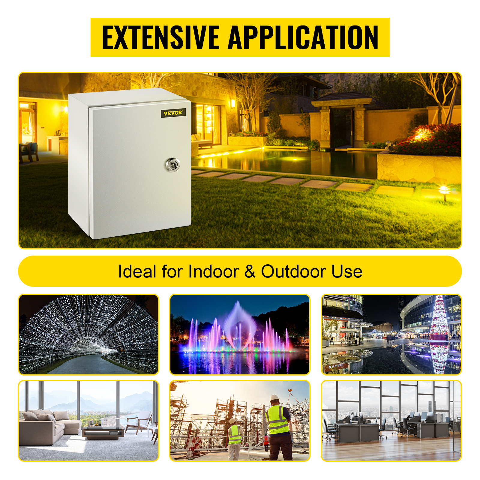 Tämä teräksinen sähkökotelo suojaa liittimiä, kaapeleita ja muuta sähkötekniikkaa pölyltä, kosteudelta ja mekaaniselta rasitukselta. IP66-suojausluokka ja NEMA 4X -teräskotelo tekevät siitä soveltuvan sisä- ja ulkokäyttöön sääolosuhteet huomioiden.