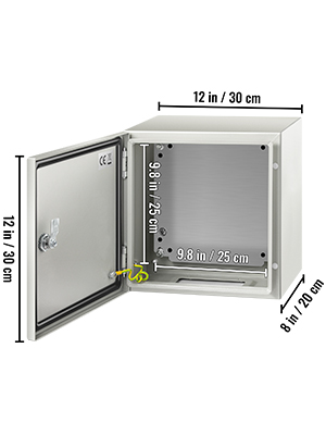 Teräksinen sähkökotelo NEMA 4X IP66 30x30x20 cm, harmaanvalkoinen, seinäasennus, asennuslevyllä