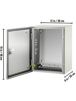 Tämä teräksinen sähköjakorasian kotelo on suunniteltu suojaamaan sähkölaitteita erilaisissa olosuhteissa. IP66-suojausluokan, tiivisteiden, lukittavan rakenteen ja tukevien saranoiden ansiosta se pitää liittimet, kaapelit ja muut komponentit suojassa pölyltä, kosteudelta ja korroosiolta. Tuote soveltuu sisä- ja ulkokäyttöön sääolosuhteet huomioiden.