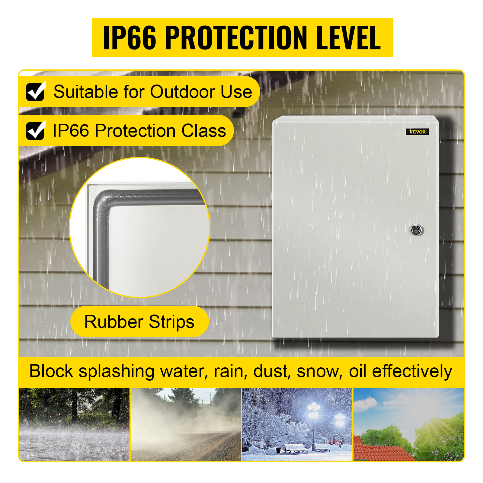 - IP66-suojaus: pölytiivis ja suojattu vesisuihkua ja sadetta vastaan