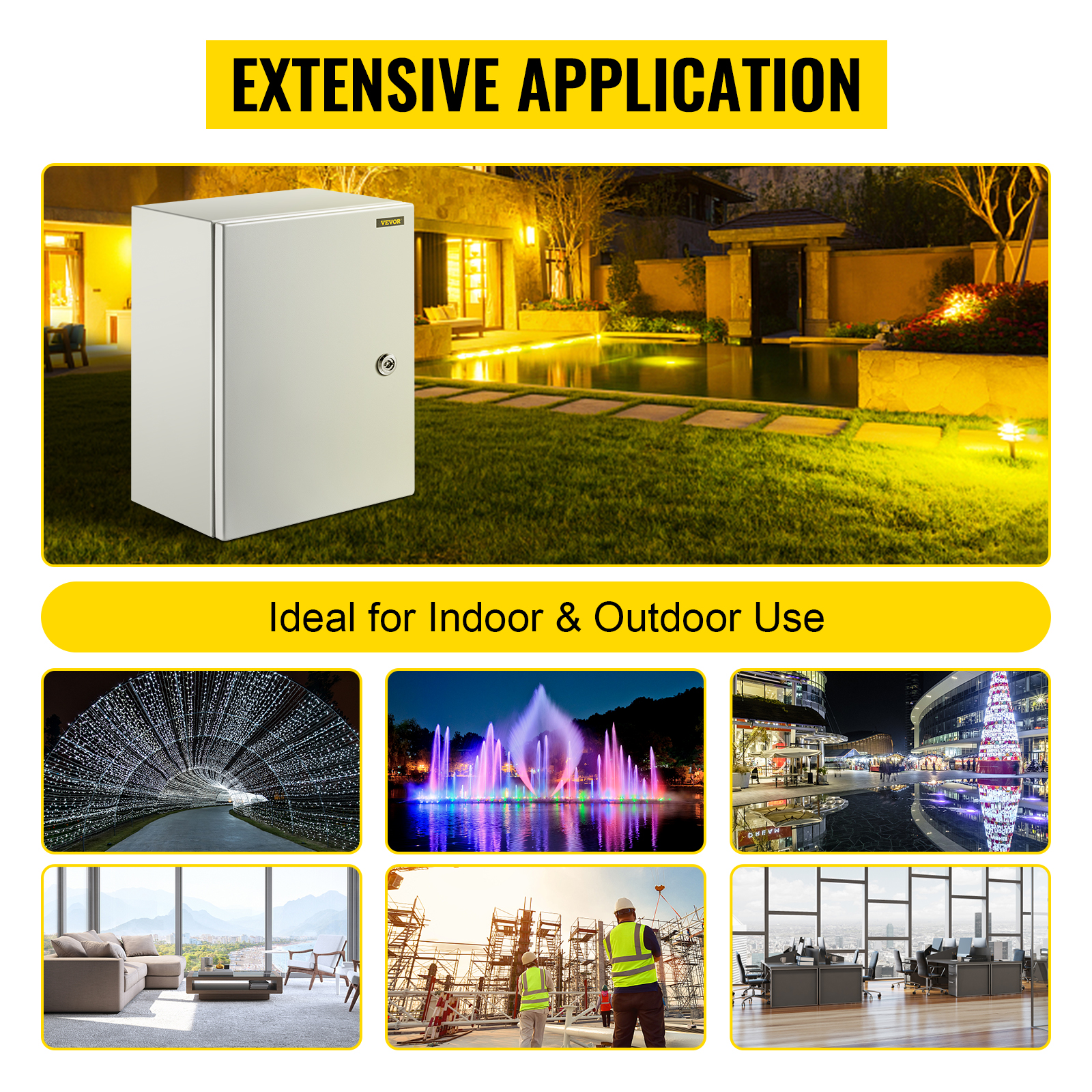Kotelo soveltuu sähköasennusten suojaamiseen erilaisissa kohteissa, kuten teollisuudessa, kiinteistöissä ja piha-alueilla. Tiivis rakenne ja luja teräsmateriaali auttavat suojaamaan asennettuja laitteita ympäristötekijöiltä. Tuotteen käyttöikä ja kestävyys riippuvat käyttöympäristöstä ja sääaltistuksesta.