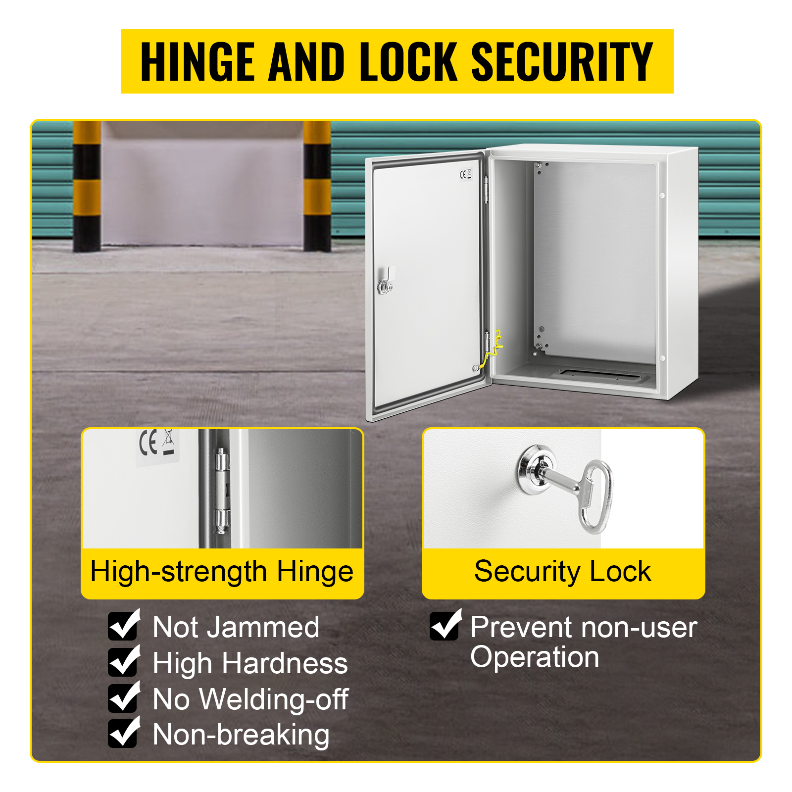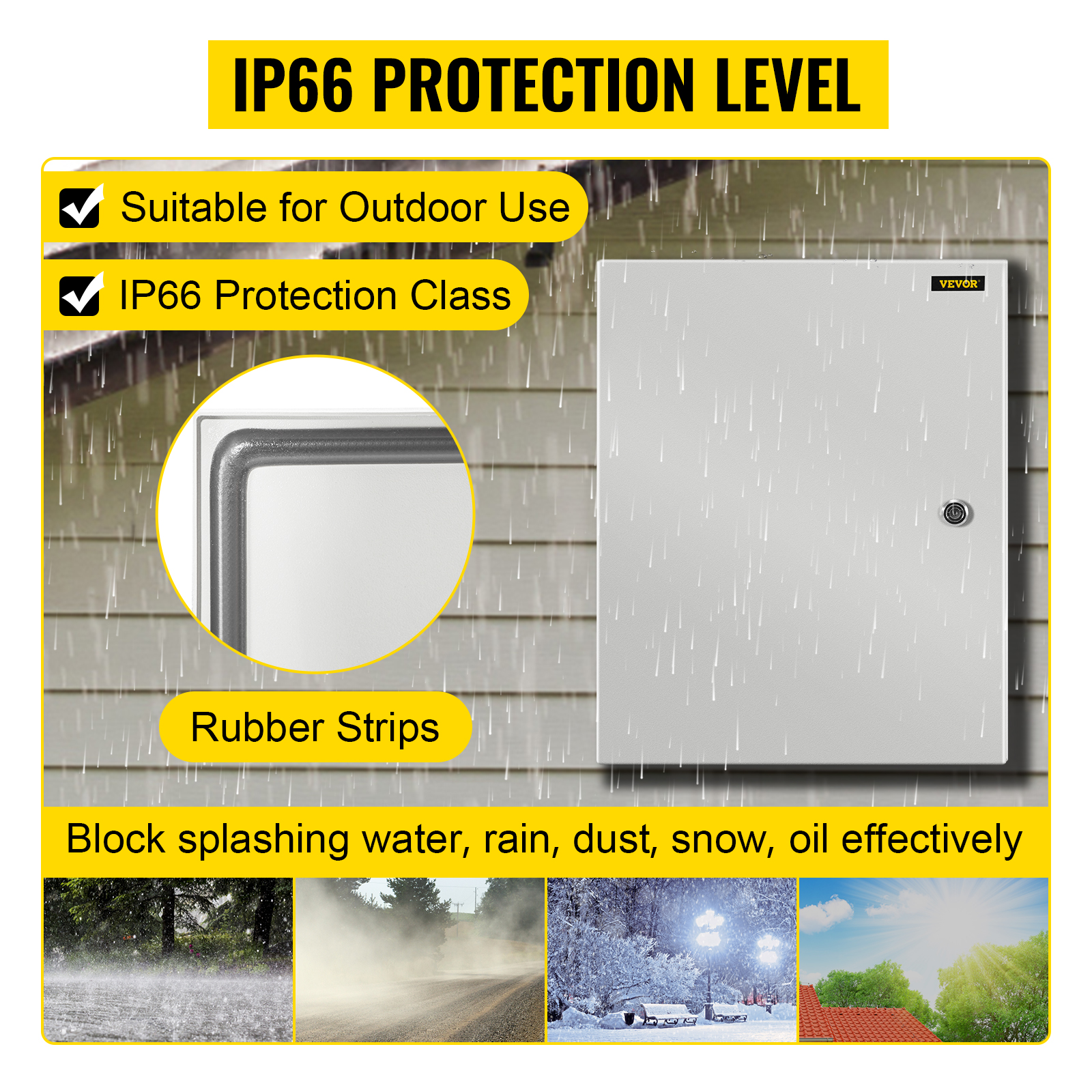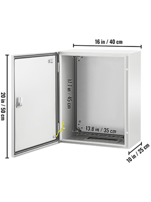 Teräksinen NEMA-sähkökotelo suojaa liittimet, kaapelit ja muun sähkölaitteiston pölyltä, kosteudelta ja mekaaniselta rasitukselta. IP66-suojausluokka, tiivisteet, vahva lukitus ja saranoitu rakenne tekevät kotelosta soveltuvan sekä sisä- että ulkokäyttöön sääolosuhteet huomioiden.