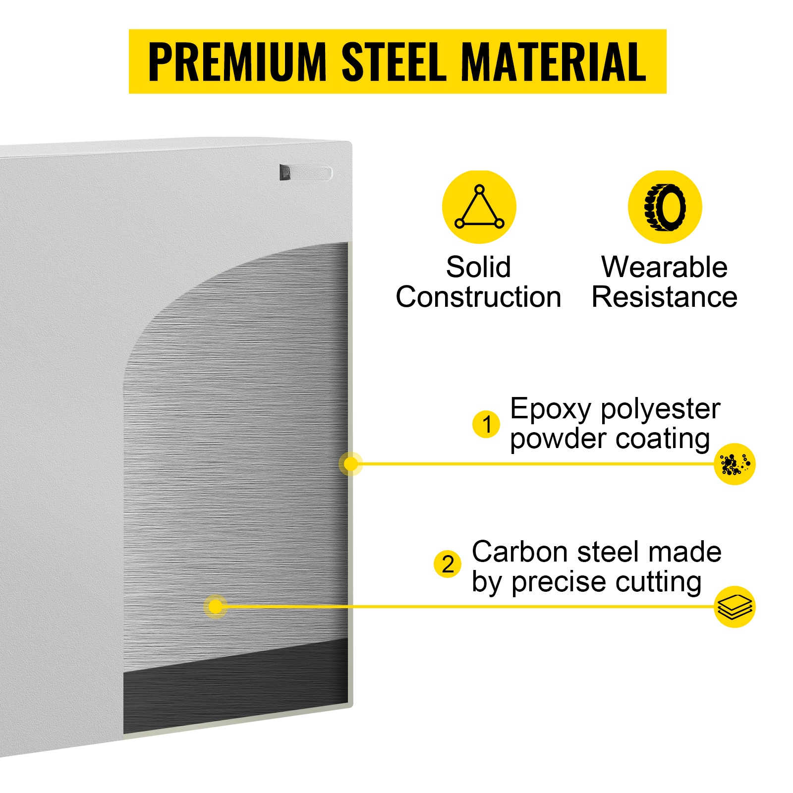 Sisäinen lukkopesä on metallia, mikä ehkäisee vaurioita liiallisesta voimankäytöstä tai luvattomasta avaamisesta. Vahvistetut saranat kestävät toistuvaa avaamista ja sulkemista.