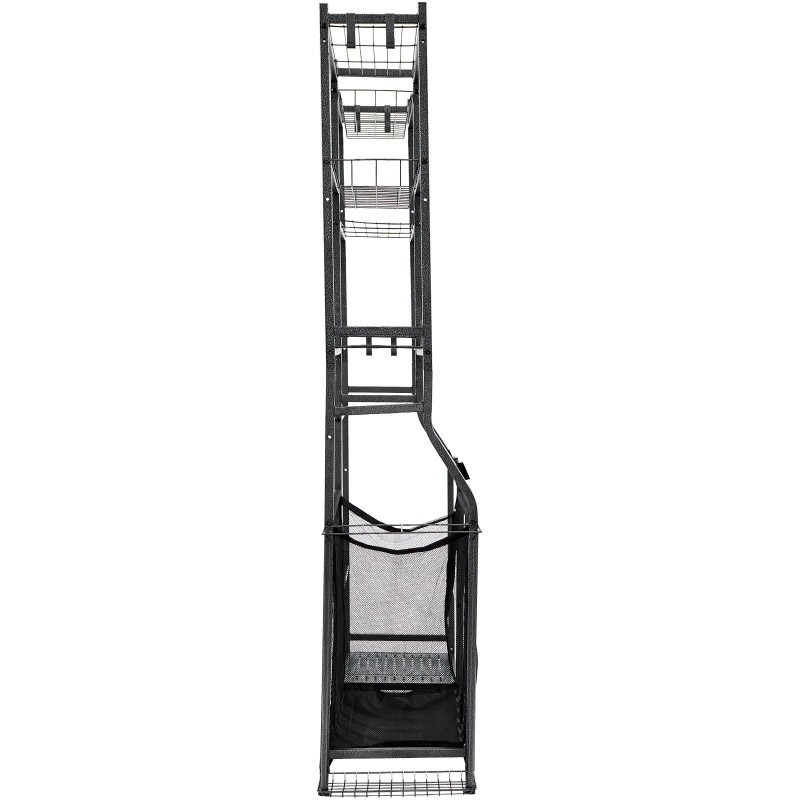 Tämä tukeva säilytyshylly auttaa pitämään golfbägit, pallot, mailat, mailapelit ja muut urheiluvälineet hyvässä järjestyksessä. Eri tasot, korit ja koukut tekevät välineiden lajittelusta selkeää ja vapauttavat tilaa autotallissa tai varastossa.