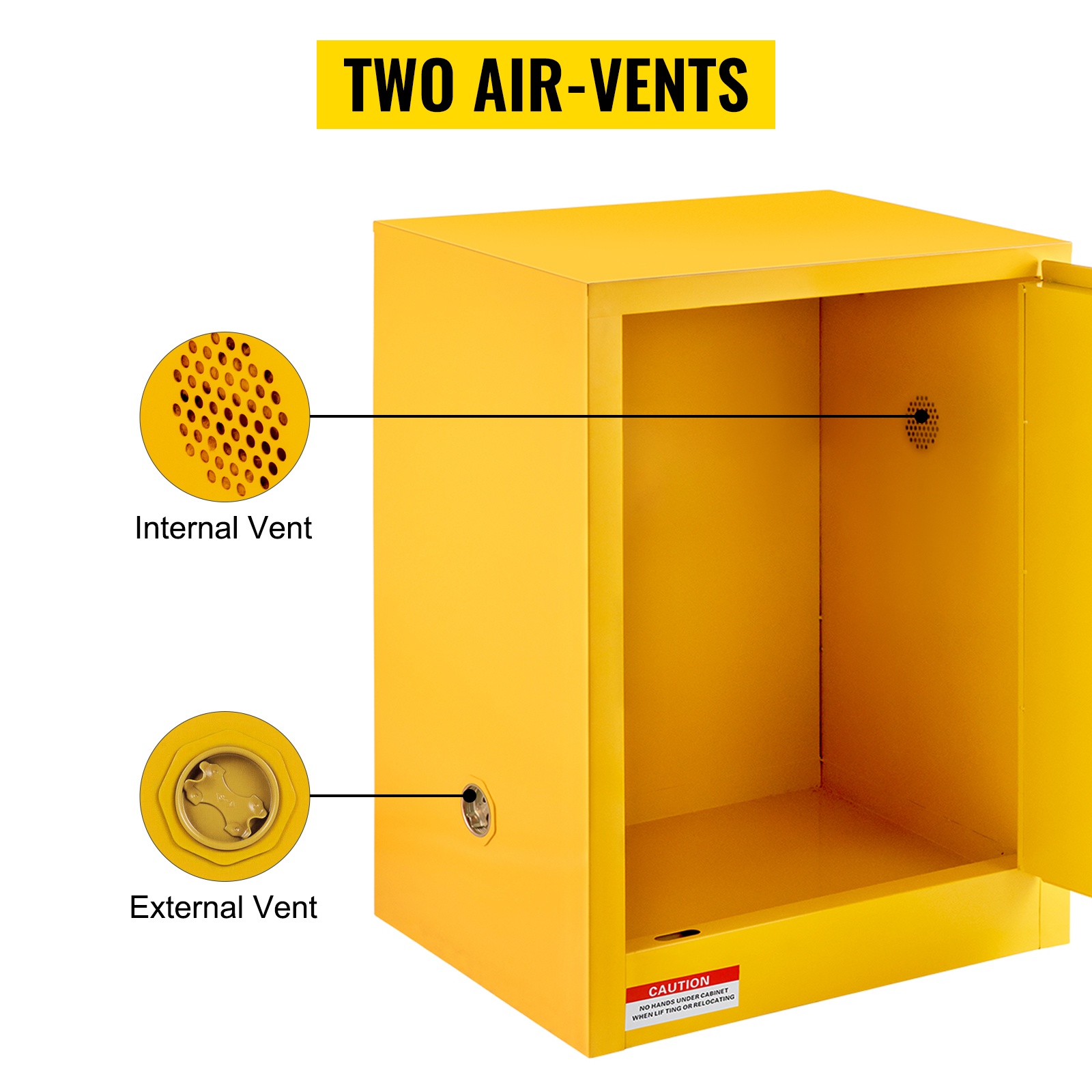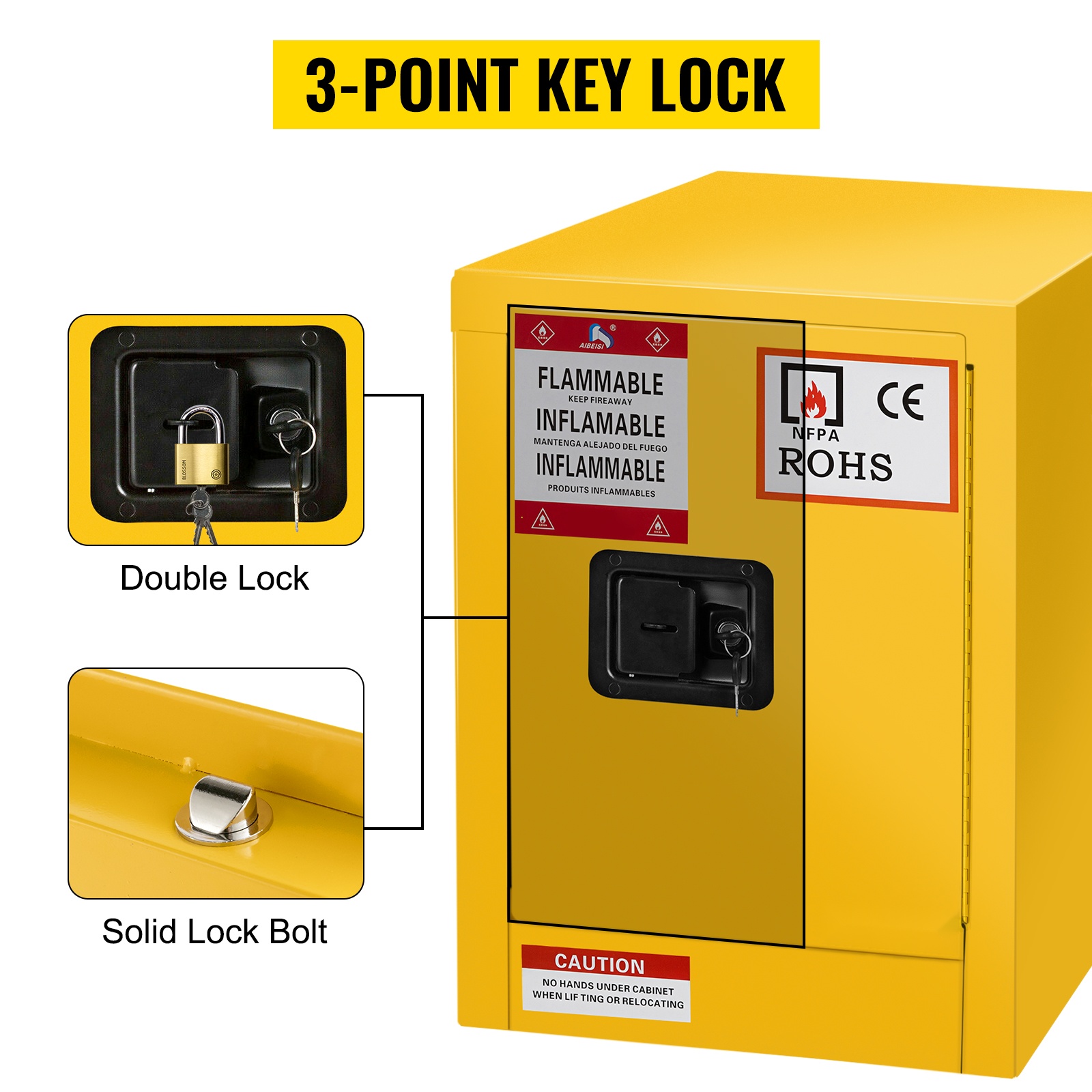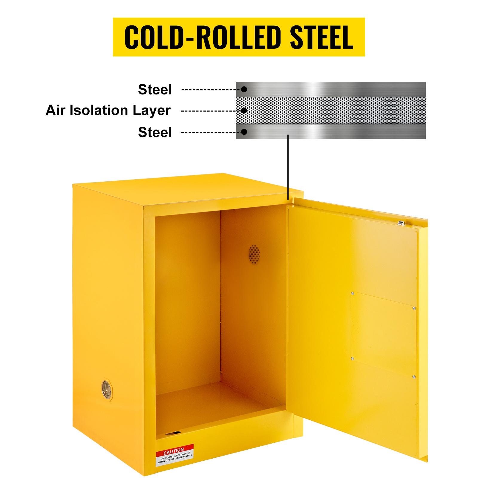Kaappi on suunniteltu palavien ja helposti syttyvien nesteiden, kuten alkoholin, liimojen, banaaniöljyn ja bensiinin säilyttämiseen. Q235-kylmävalssattu teräsrunko ja galvanoidusta teräksestä valmistettu hylly kestävät kulutusta ja korroosiota. Ovirakenteessa on 1-1/2 tuuman ilmarako, joka hidastaa lämmön siirtymistä ja vähentää tulipalon ja räjähdyksen riskiä.